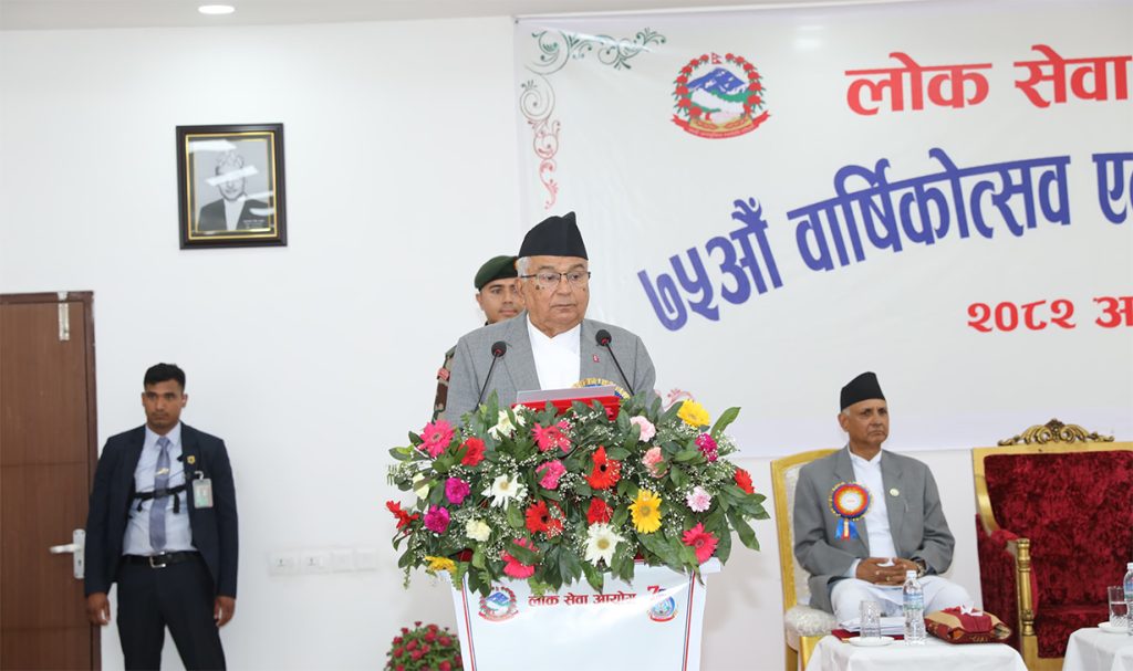 राष्ट्रपति पौडेलले मुलुक सञ्चालन गर्ने सरकारी निकायमा स्थायी सरकारका रूपमा रहने योग्य कर्मचारी छनोट गर्ने संवैधानिक जिम्मेवारी पाएको लोकसेवा आयोगले ७५ वर्षमा आफ्नो मूल सिद्धान्त ‘योग्यता, निष्पक्षता र स्वच्छता’लाई प्रमुख आधार मान्दै निरन्तर क्रियाशील रहनु प्रशंसनीय कार्य भएको बताए ।