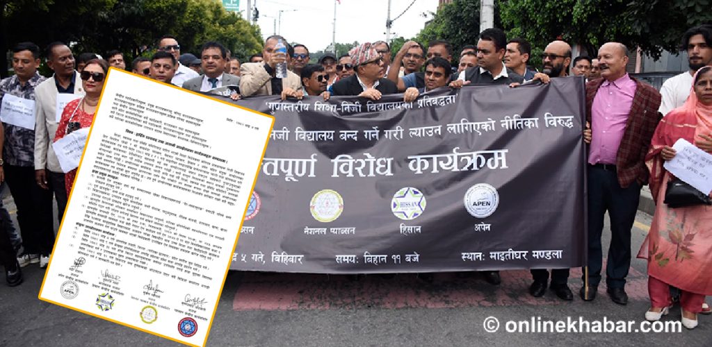 विद्यालय बन्द गर्नेसहितको आन्दोलन घोषणा गरेका  प्याब्सन, एनप्याब्सन, हिसान र अपेनले विधेयक सच्याउन दबाब दिइरहेका छन् ।