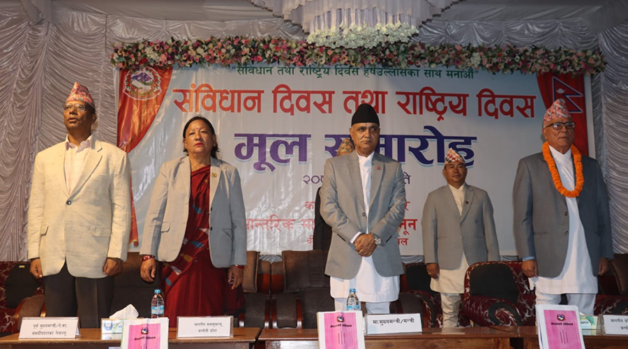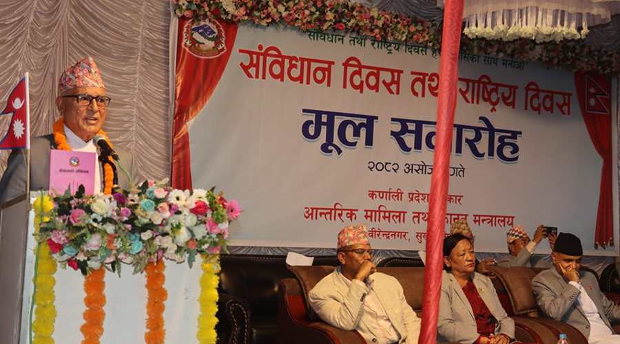 ३ असोज, सुर्खेत । संविधान दिवस तथा राष्ट्रिय दिवस, २०८२ कर्णाली प्रदेश सरकारले पनि मनाएको छ । संविधान जारी भएको १० वर्षे अवसरमा प्रदेश सरकारले शुक्रबार राजधानी वीरेन्द्रनगरमा औपचारिक कार्यक्रम गरी दिवस मनाएको हो ।