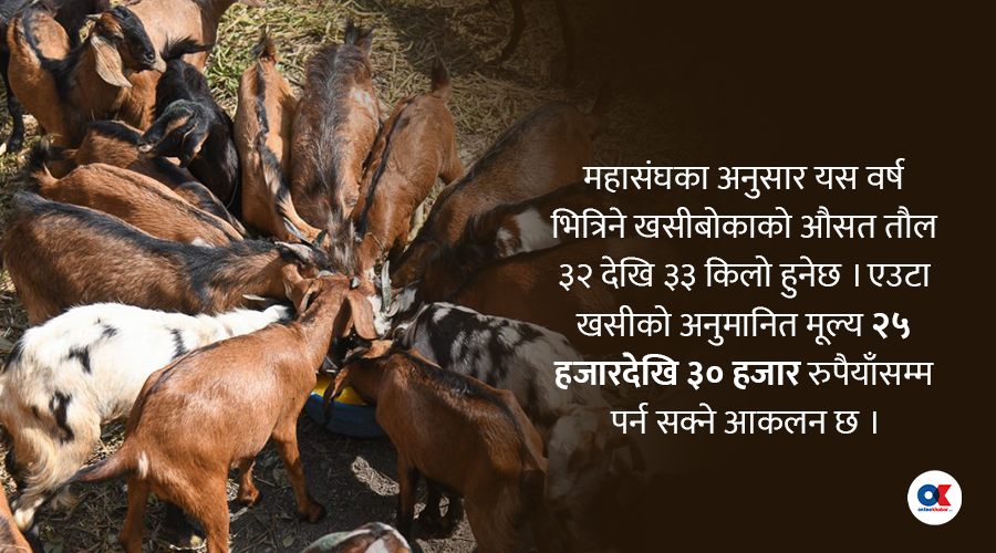 पशु सेवा विभागका अनुसार गत वर्ष दशैंमा काठमाडौं उपत्यकामा ५५ देखि ६० हजार खसीबोका खपत भएका थिए ।