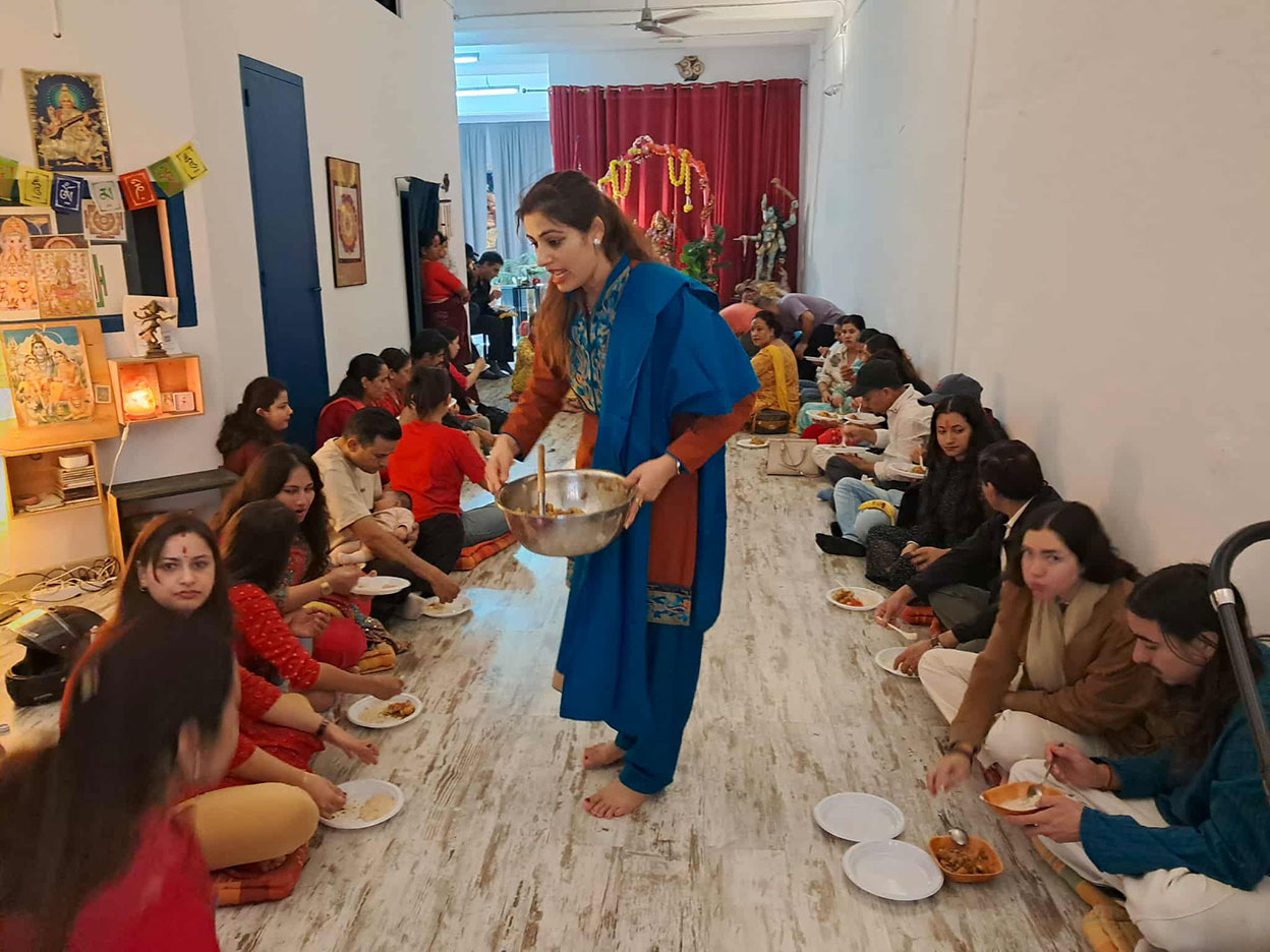 पूजास्थलमा पुगेका भक्तजनले दशैंको वातावरण प्रस्टसँग अनुभव गरेका छन्। महिलाहरू रातो पहिरनमा, पुरुषहरू दौरा-सुरुवालमा र बालबालिका परम्परागत लुगा–कपडामा सजिएर पूजामा सहभागी छन्।भजन, आरती र वैदिक मन्त्रसँगै प्रसादको सुवासले यहाँको माहोललाई घर-गाउँको दशैंमेला जस्तो बनाएको छ।