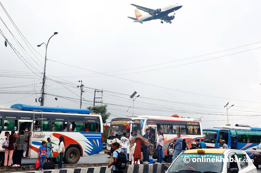 १५ असोज, काठमाडौं। दशैं मनाउन काठमाडौं उपत्यका छाड्नेहरूको ताँती उपत्यकाबाट बाहिरिने नाकाहरूमा अहिले उत्तिकै छ। मंगलबार बेलुकीसम्म साढे पाँच लाखभन्दा बढीले उपत्यका छाडेका छाडेका छन्।