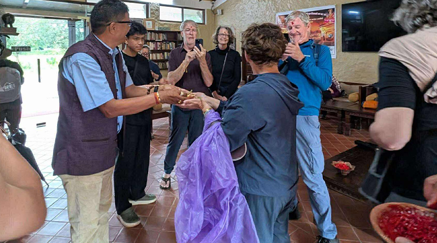 सौराहामा विदेशी पर्यटकहरूले नेपाली परम्परा अनुसार दशैं मनाए