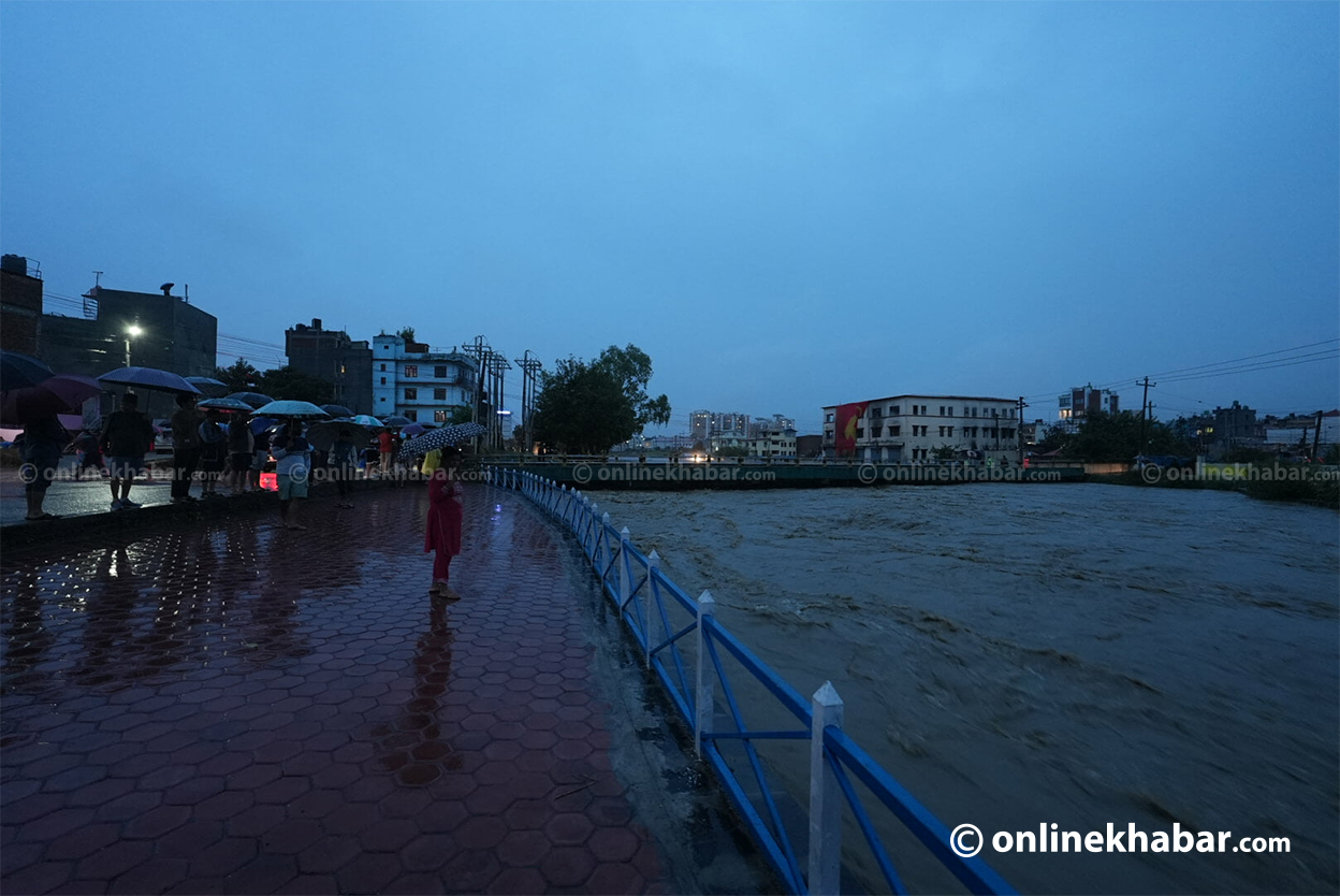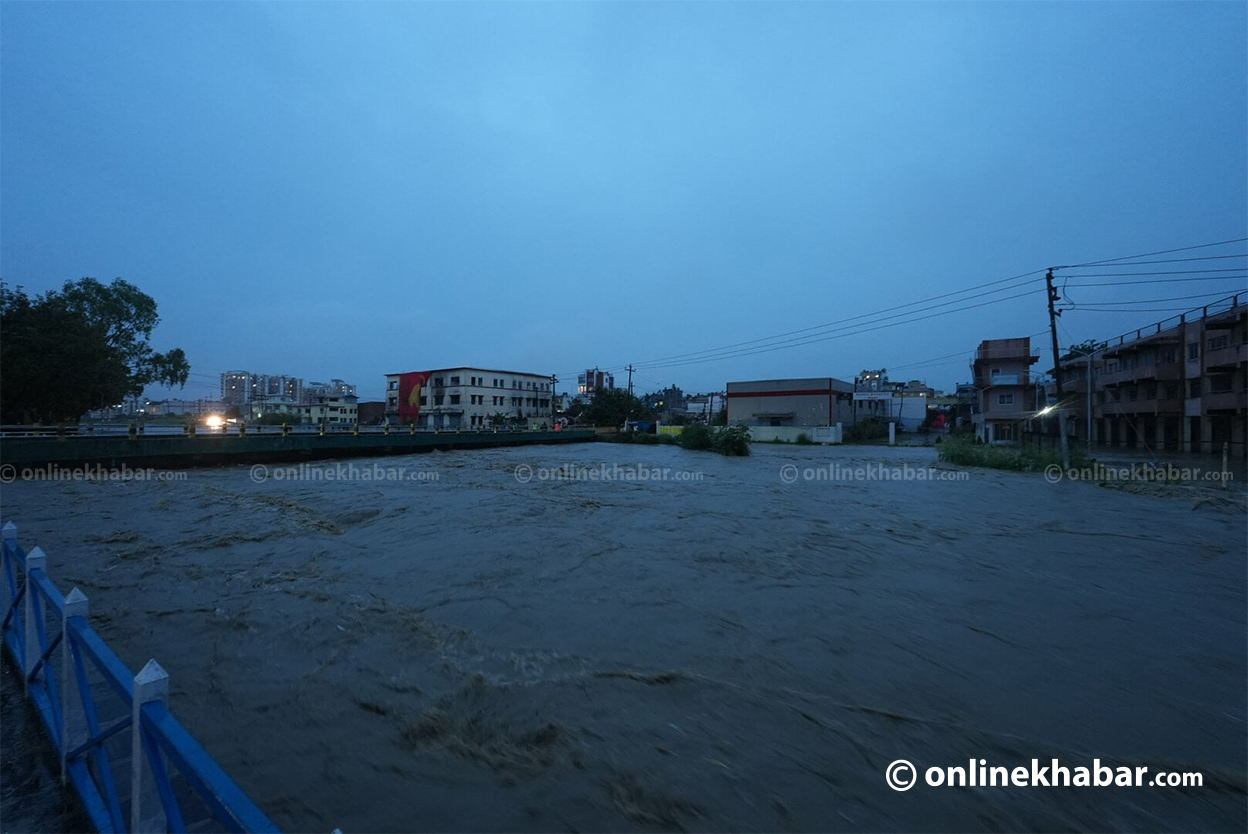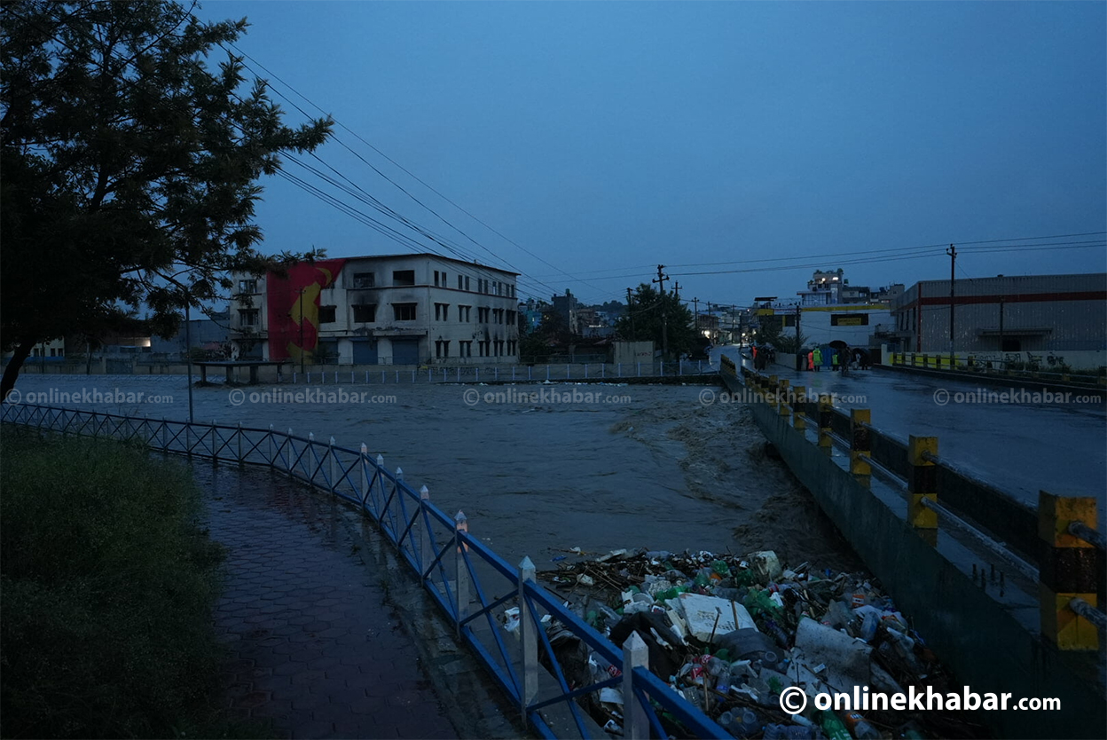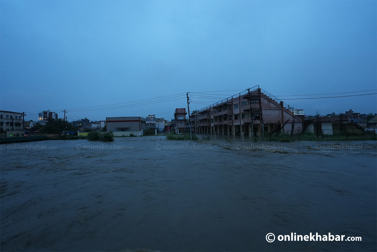 मनोहरा खोलामा पानीको सतह बढेर एमाले कार्यालय नजिकै पक्की पुलसम्म आइपुगेको छ । पक्कीपुलले पानीको प्रवाह रोकिएका कारण सडक र नजिकका घरबस्तीहरु डुबानमा पर्ने जोखिम बढेको छ ।