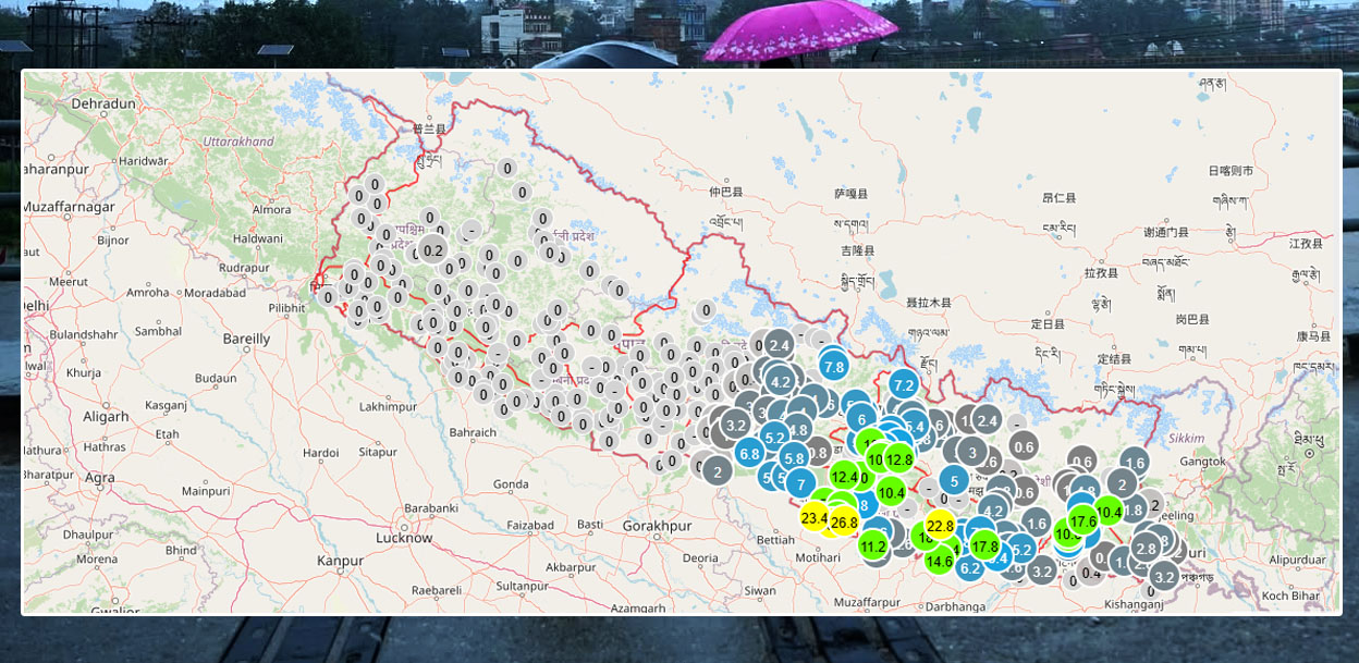 १८ असोज, काठमाडौं । गत वर्ष असोज ११ र १२ गते वर्षासँगै गएको बाढी र पहिरो बिर्साउने गरी यसवर्ष पनि २४ घण्टादेखि निरन्तर वर्षा भइराखेको छ । जल तथा मौसम विभागका अनुसार सोमबारसम्मै निरन्तर वर्षा हुन प्रक्षेपण छ ।
