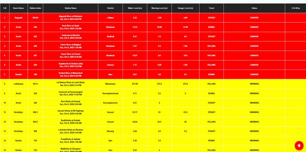 १९ असोज, काठमाडौं । बाढी पूर्वानुमान महाशाखाले काठमाडौं उपत्यका र पूर्वका विभिन्न ७ वटा खोला तथा नदीहरुमा पानीको सतह खतराको तहभन्दा माथि पुगेको जनाएको छ ।