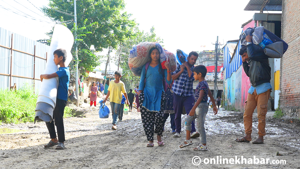 तर, आइतबार दिउँसो रिपोर्टिङको क्रममा त्यहाँ पुग्दा परिस्थिति फेरिँदै थियो । मौसम सफा भएर राजधानीमा घाम झुल्किएसँगै स्थानीय पनि कुलेश्वरको आफ्नो बस्तीमा फर्किन थालेका थिए । उक्त सुकुम्बासी बस्तीमा सामान्य चहलपहल सुरु भएको थियो । कतिपय आफ्नो घरभित्रको हिलो सफा गर्दै थिए । टोलका अगुवा हिलाम्य बाटो र सार्वजनिक ठाउँ सफाइमा व्यस्त थिए ।