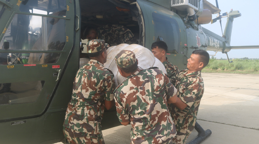स्थलमार्ग पहिरोका कारण अवरुद्ध भएका कारण मंगलबार प्रदेश सरकारले तत्कालका लागि नेपाली सेनाको हेलिकोप्टर मार्फत राहत सामग्री पठाएको हो ।