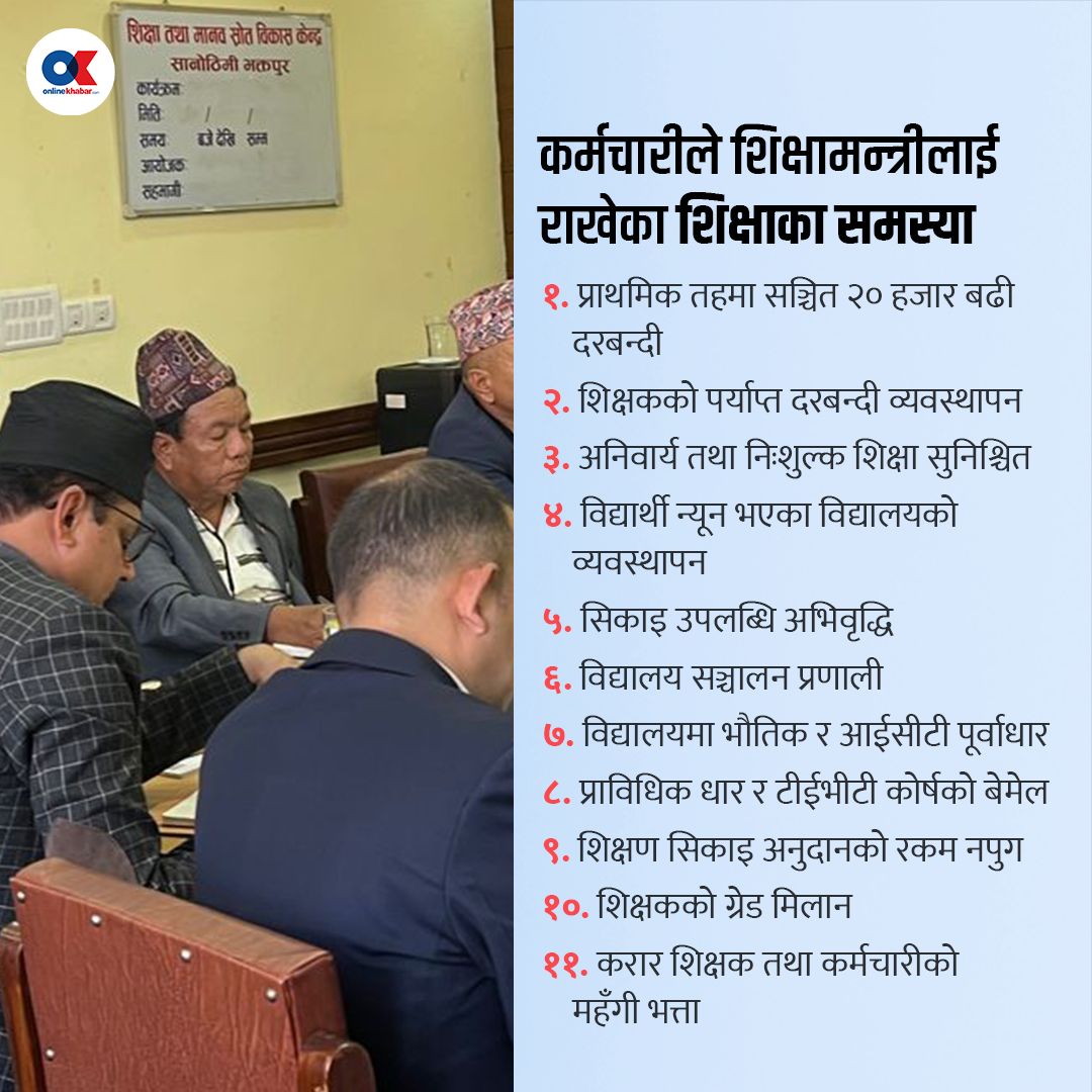 प्राथमिक तहमा सञ्चित २० हजार बढी दरबन्दी, शिक्षकको दरबन्दी व्यवस्थापन, अनिवार्य तथा निःशुल्क शिक्षा सुनिश्चित, विद्यार्थी संख्या न्यून भएका विद्यालयहरूको व्यवस्थापन गर्नुपर्ने विषयबारे कर्मचारीले जानकारी गराए ।