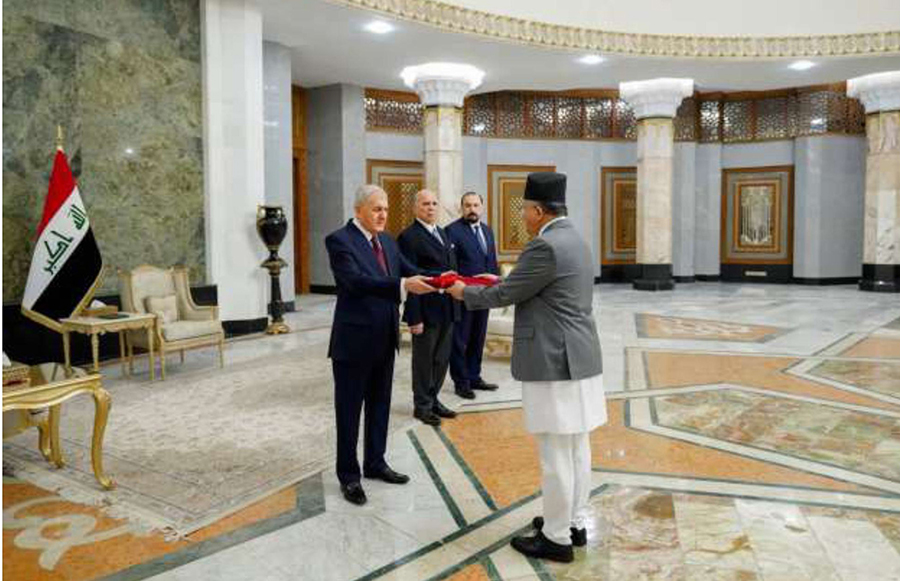 २३ असोज, काठमाडौं । इराकका लागि नेपालका गैरआवासीय राजदूत घनश्याम लम्सालले त्यहाँका राष्ट्रपति डा. अब्दुल्लातिफ जमाल रसिदसमक्ष आफ्नो ओहोदाको प्रमाणपत्र प्रस्तुत गरेका छन् ।