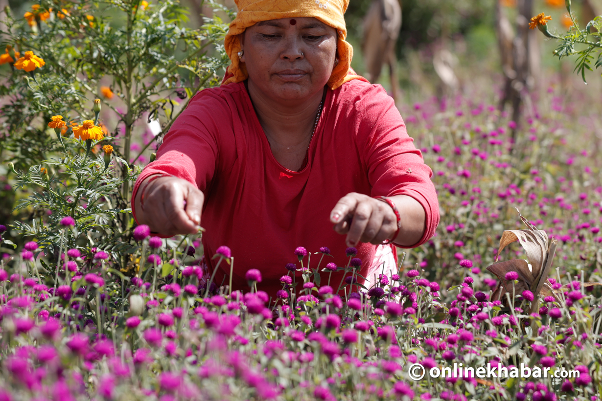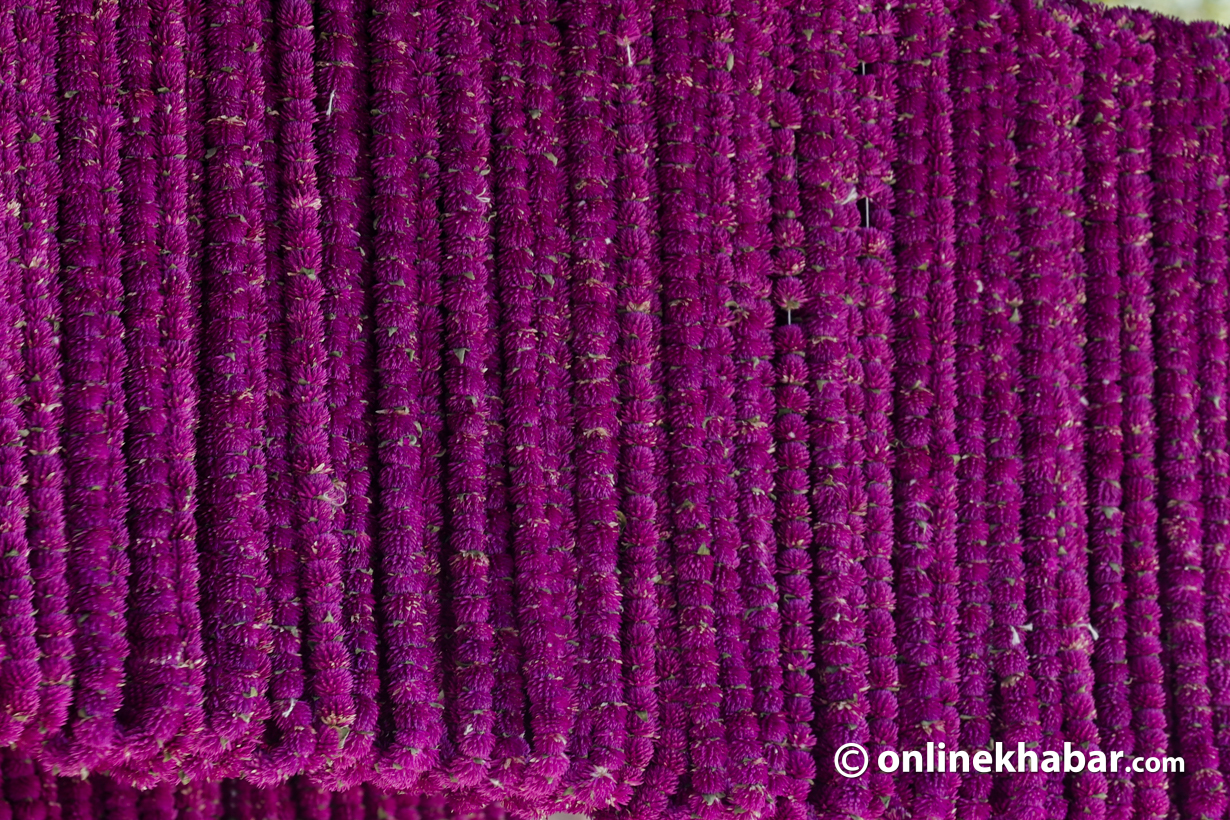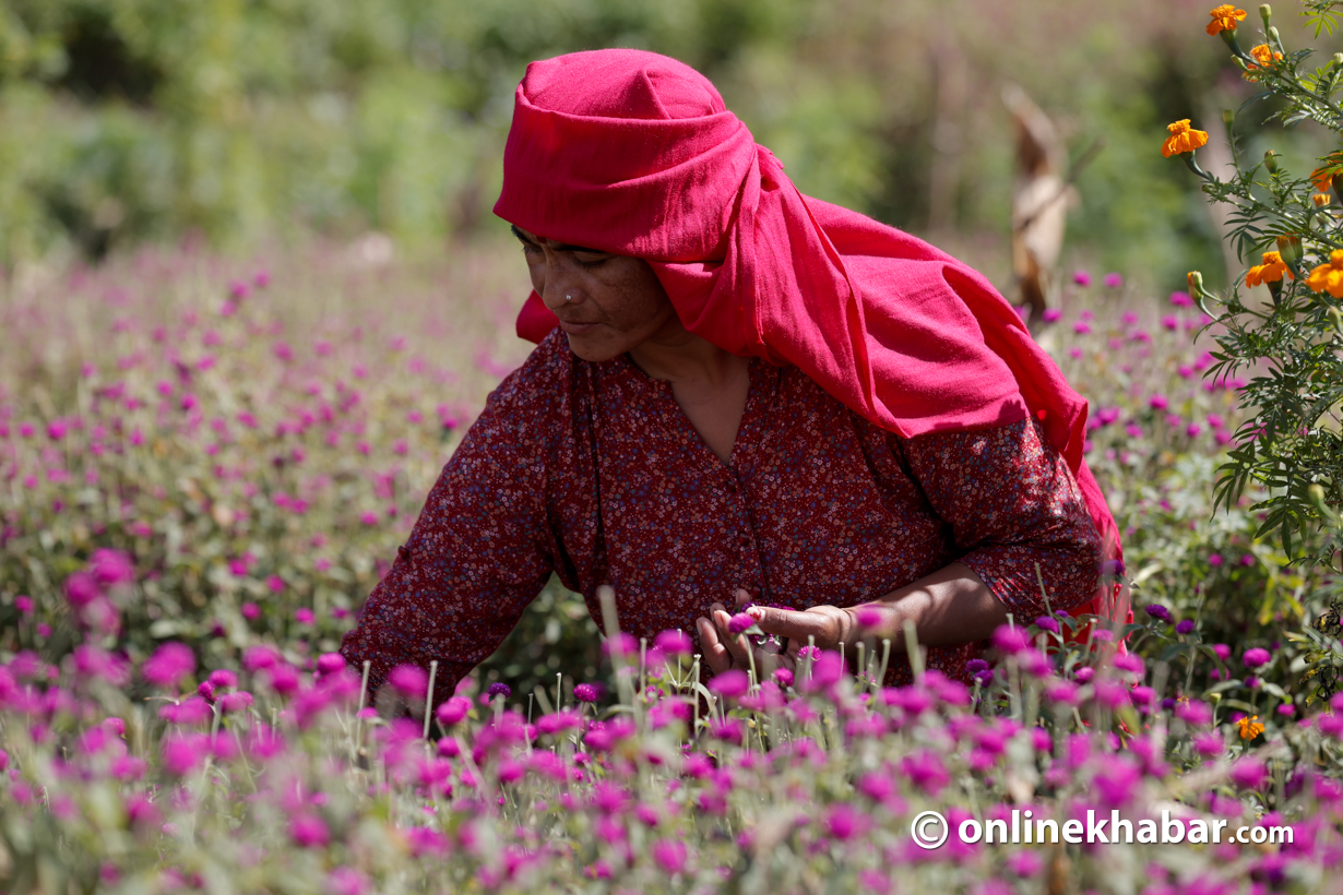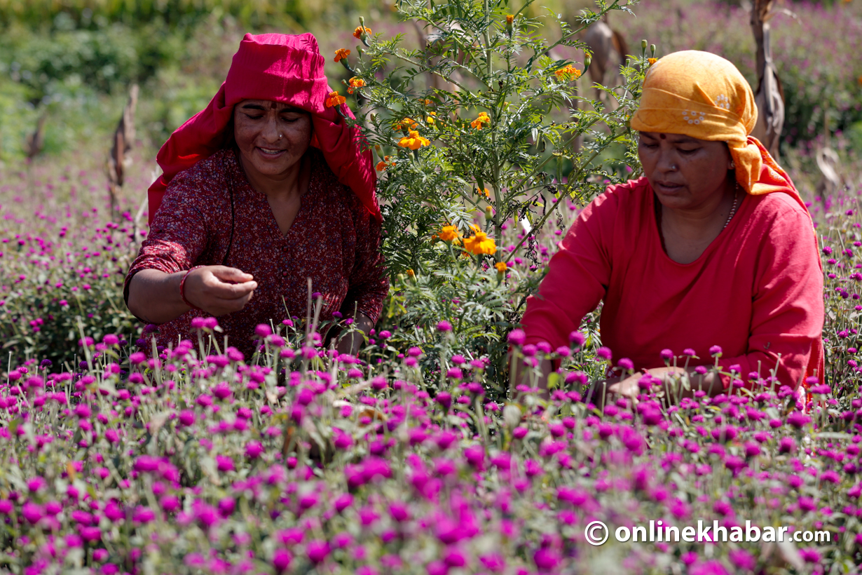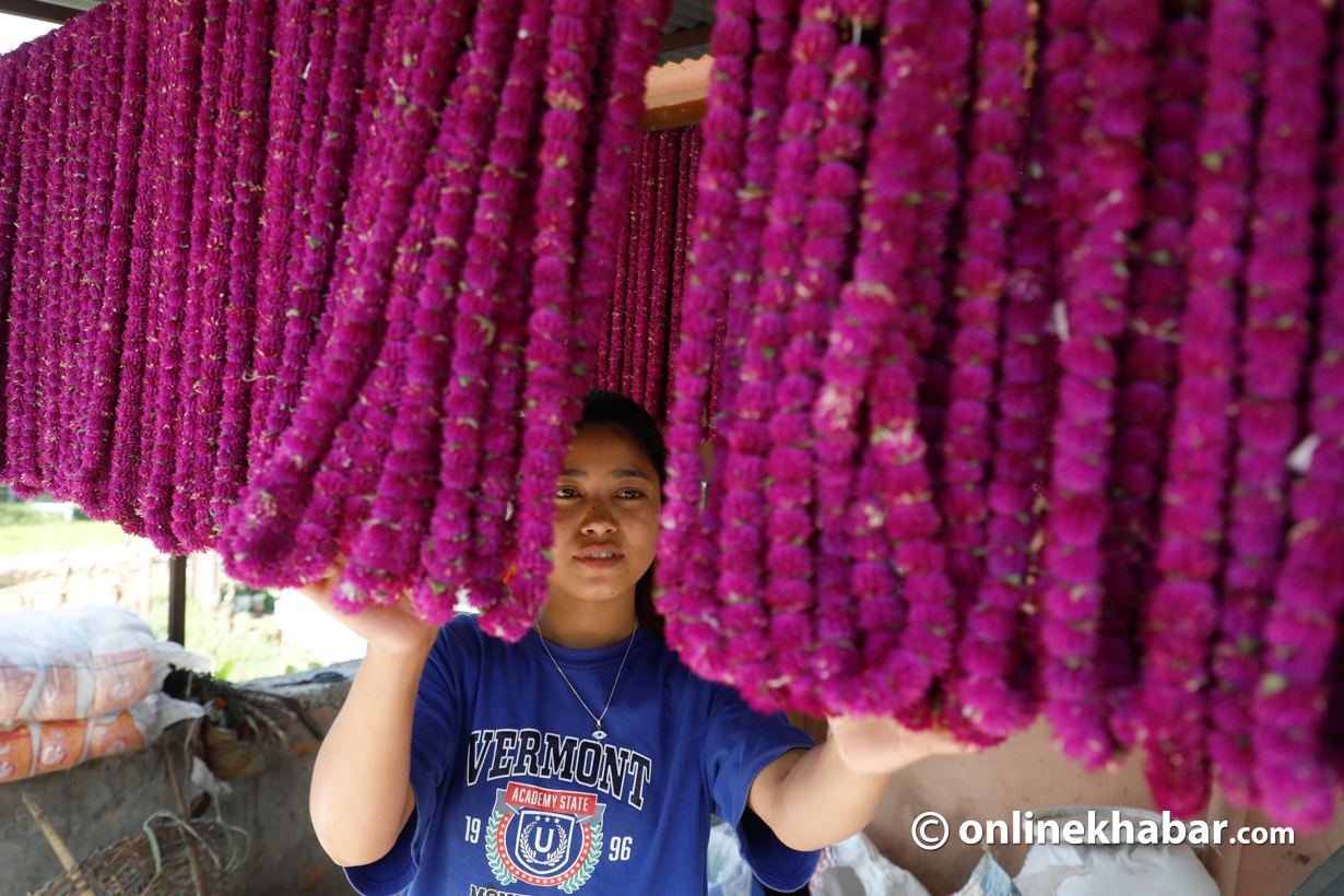 २४ असोज, काठमाडौं। तिहार नजिकिएसँगै भक्तपुरको सूर्यविनायक नगरपालिका–७ गुन्डुका किसानहरूलाई फूल टिप्न र माला बनाउन भ्याइनभ्याइ छ ।