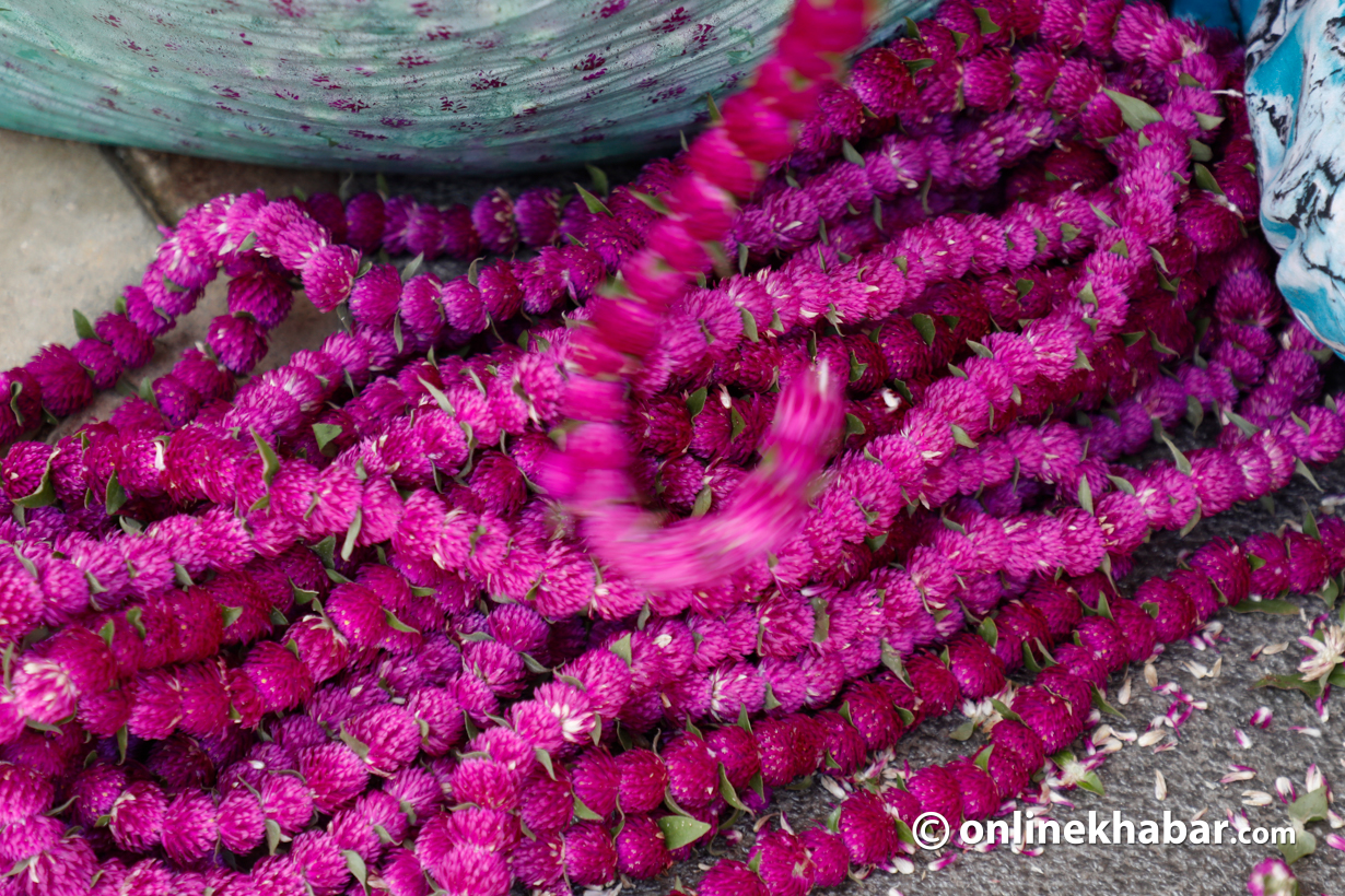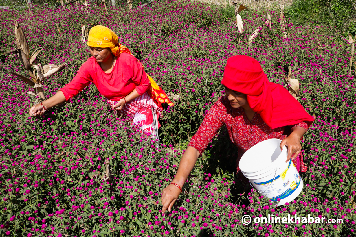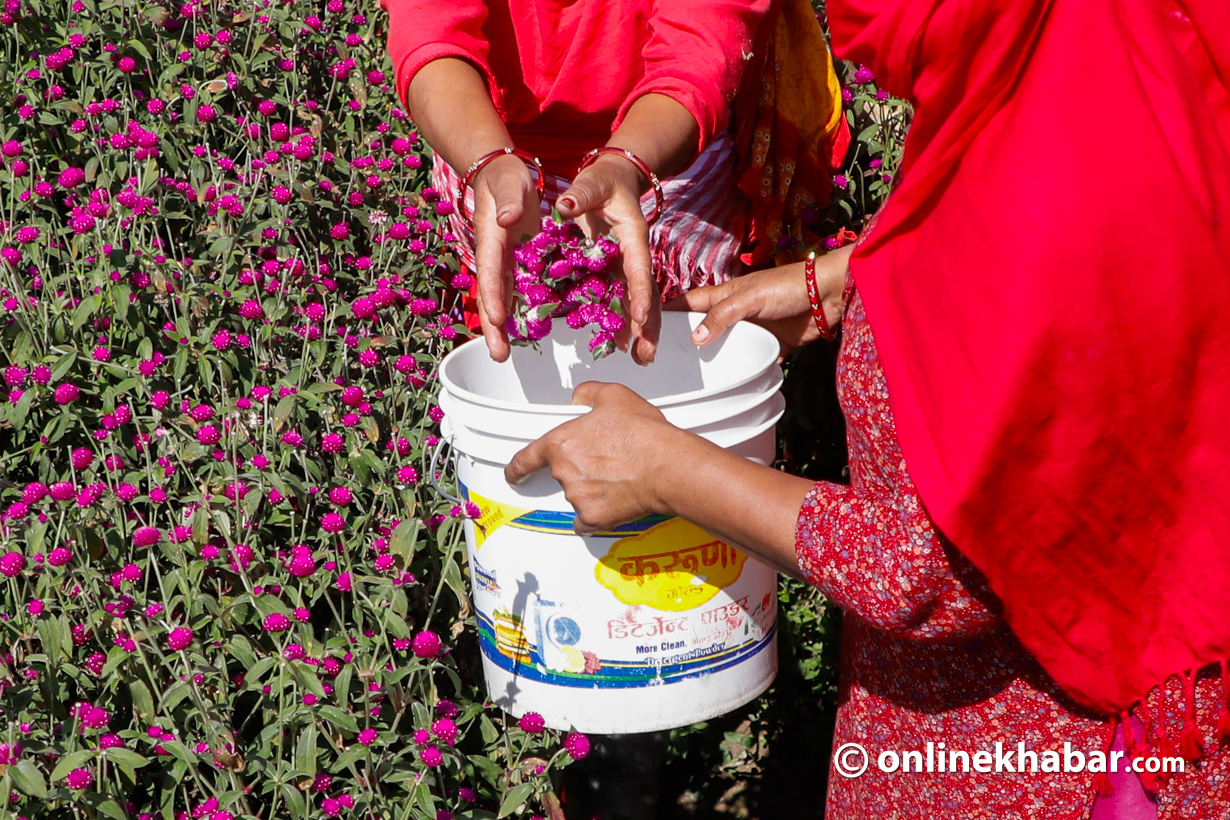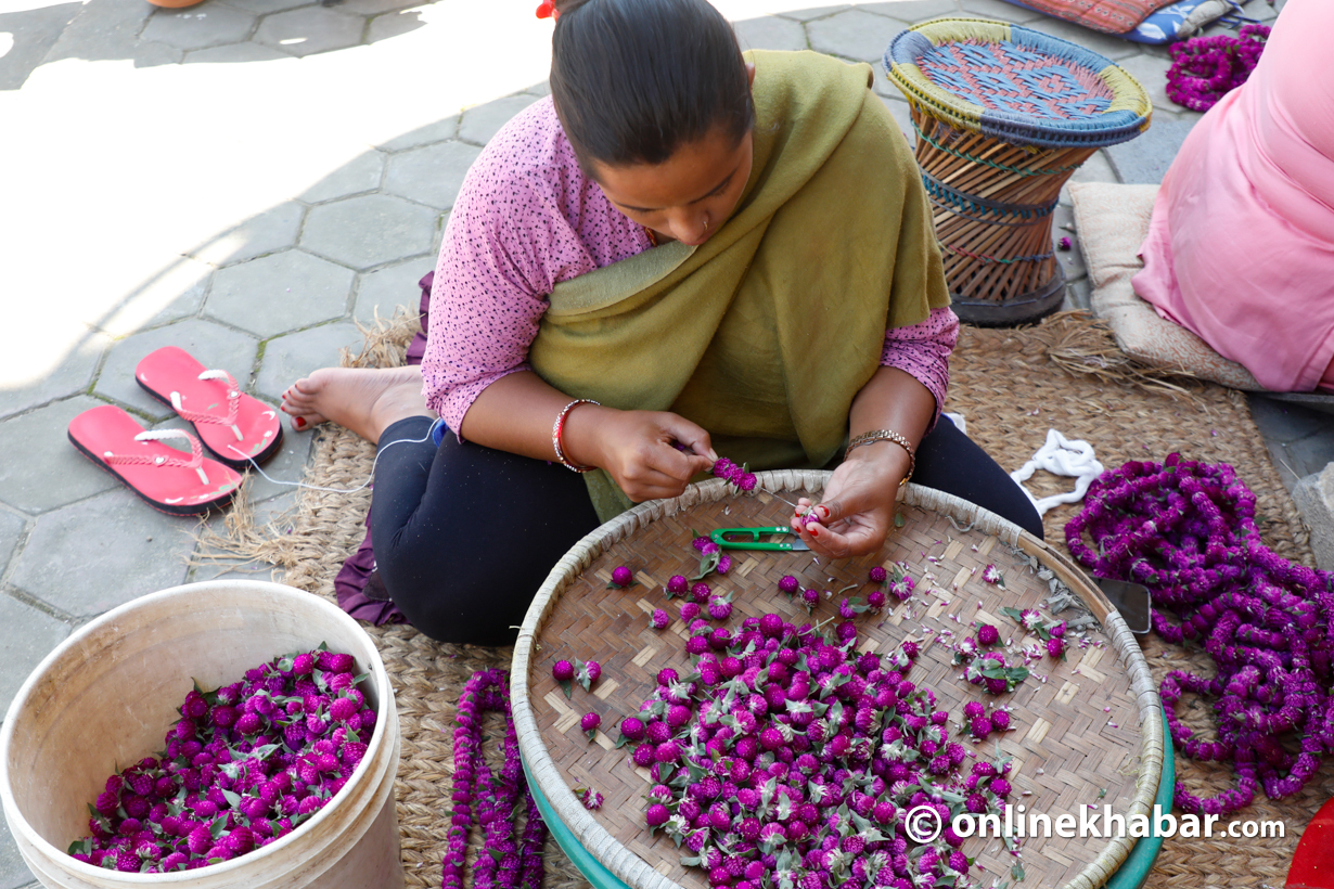 सूर्यविनायक नगरपालिका–७का वडाअध्यक्ष रवीन्द्र सापकोटाका अनुसार दशैं सकिएसँगै यहाँका किसान, गृहिणीलगायत फूल व्यवसायी फूल टिपेर माला उन्न व्यस्त छन्।