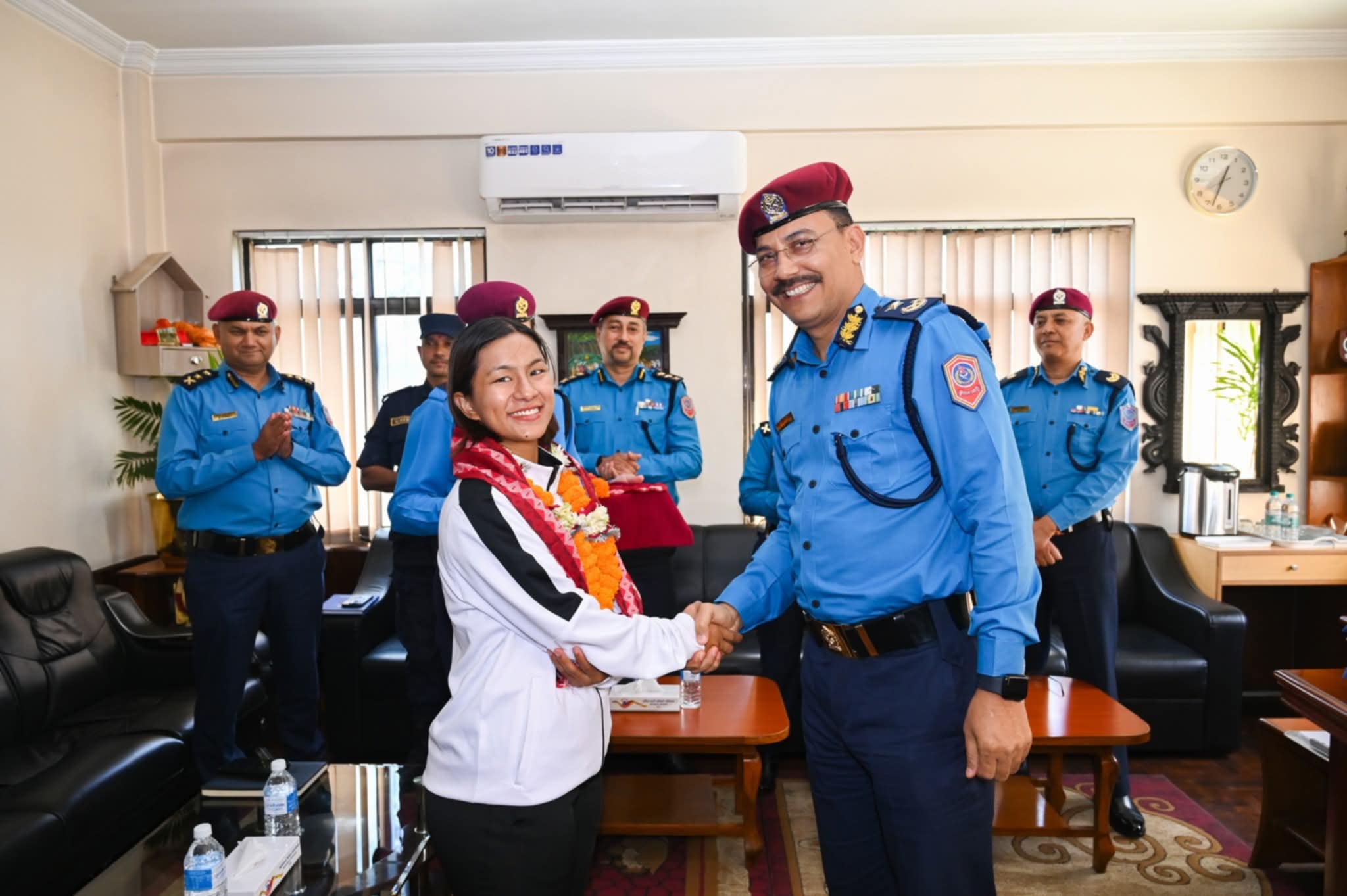 Generated by OK AI. Editorially reviewed.- नेपाल प्रहरीले अन्तर्राष्ट्रिय कराते प्रतियोगितामा पदक विजेता एरिका गुरुङलाई सम्मान गरेको छ।