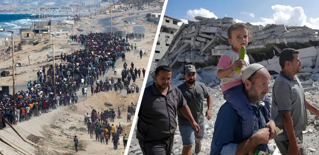 अन्तर्राष्ट्रिय सञ्चारमाध्यमहरूले सार्वजनिक गरेका तस्वीर तथा भिडियो फुटेजमा हजारौं मानिस गाजातर्फ फर्किरहेको देखिन्छ ।