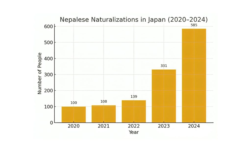 २५ असोज, टोकियो । जापानको न्याय मन्त्रालयले हालै सार्वजनिक गरेको तथ्यांक अनुसार, सन् २०२४ मा जापानी नागरिकता प्राप्त गर्ने विदेशीको कुल संख्या ८८६३ पुगेको छ । तीमध्ये तेस्रो ठूलो समूह ५८५ जना नेपाली रहेका छन् ।