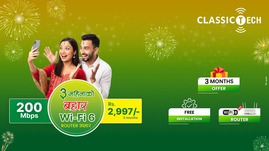 क्लासिक टेकको तिहार अफर, ३ हजारमा ३ महिनाको इन्टरनेट जोड्दा ६ हजार फाइदा