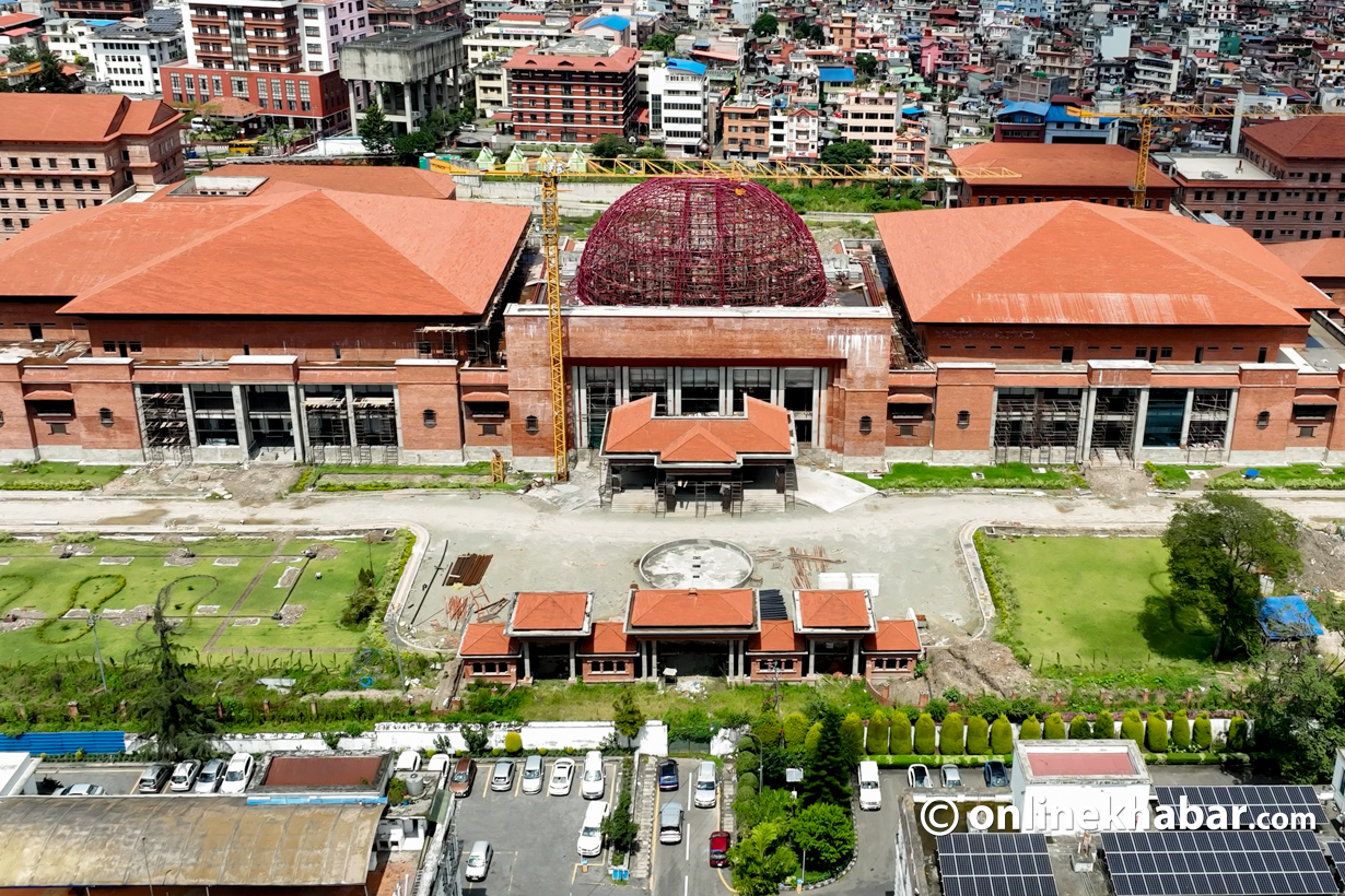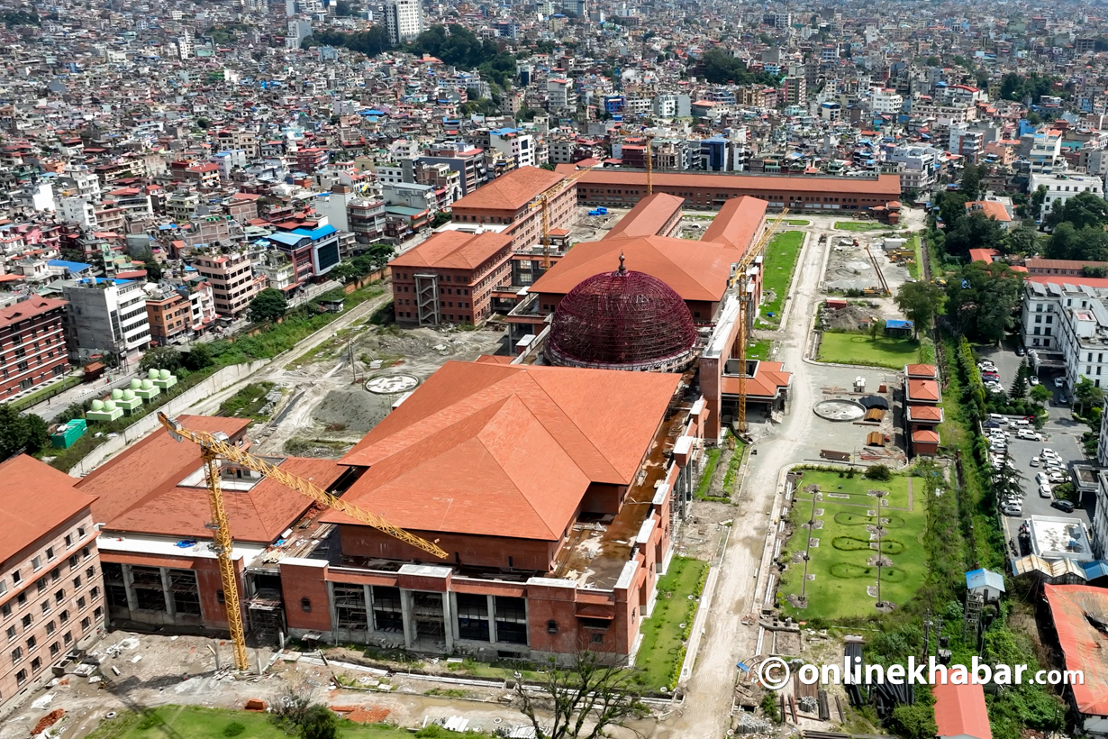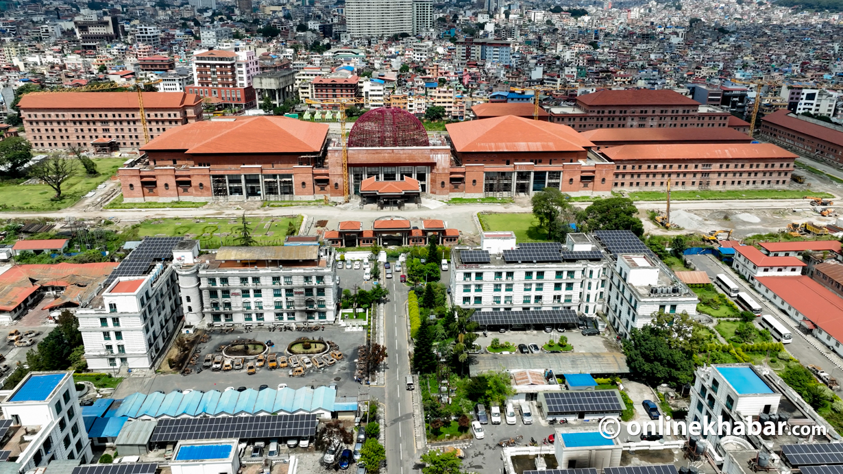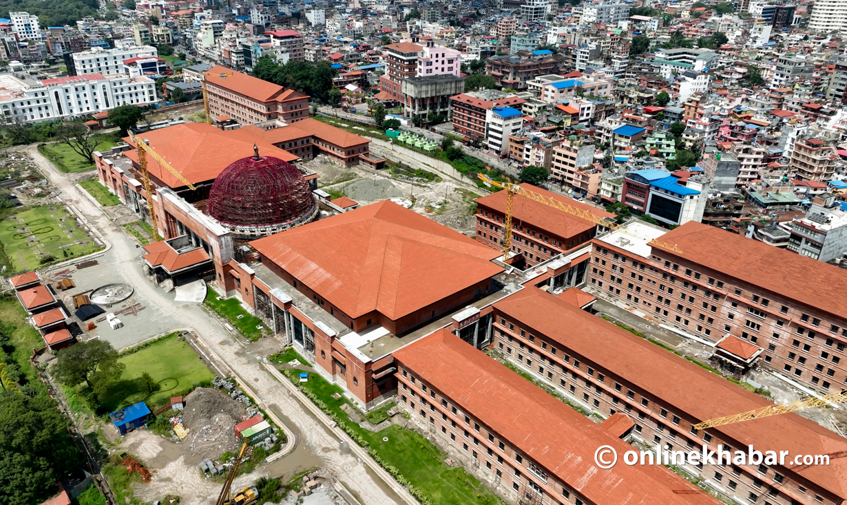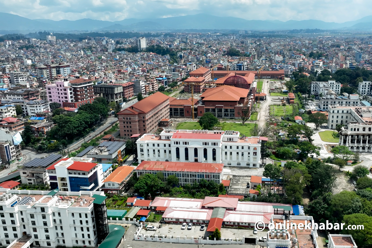 सिंहदरबार परिसरमा १५६ रोपनी क्षेत्रफलमा संघीय संसद् भवन निर्माण भइरहेको छ । पाँच तलाका अग्ला भवन ठडिइसके पनि समग्र निर्माण प्रगति भने ८७ प्रतिशत वरिपरि मात्रै छ ।