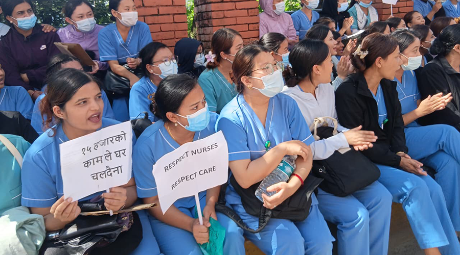आफ्नो र परिवारको भविष्य सुरक्षित नदेखेका नर्सहरूको सामूहिक आवाज छ, ‘हामी नर्स हौं, मेसिन होइनौं, १५ हजारले गुजारा चल्दैन ।’