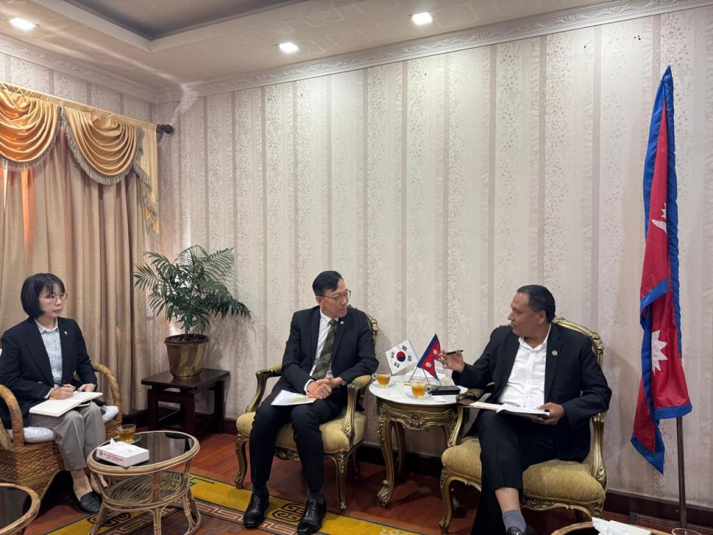 Generated by OK AI. Editorially reviewed.- ऊर्जा मन्त्री कुलमान घिसिङ र कोरियाका राजदूत पार्क ताइयोङबीच ऊर्जा क्षेत्र र आर्थिक सहकार्यबारे शिष्टाचार भेटवार्ता भएको छ।