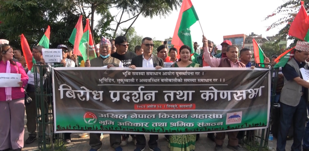 २८ असोज, काठमाडौं । सरकारले भूमि समस्या समाधान आयोग खारेज गरेकोमा आपत्ति जनाउँदै आएको नेकपा एमाले निकट अखिल नेपाल किसान महासंघले काठमाडौंमा विरोध प्रदर्शन गरेको छ ।