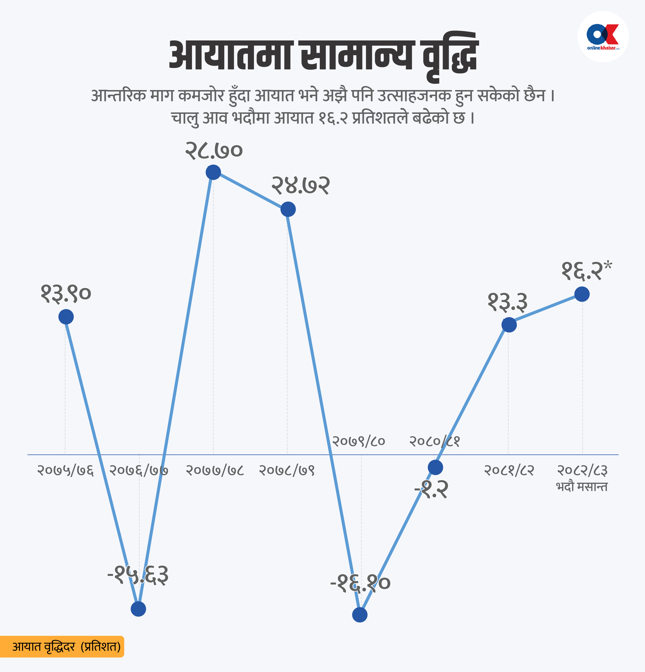 निजी क्षेत्रको कर्जासँगै रेमिट्यान्स, निर्यात, आयातमा पनि सुधार आएको छ । तर, उक्त अवधिको मूल्यवृद्धि भने १.८७ प्रतिशतमात्र देखिएको छ ।