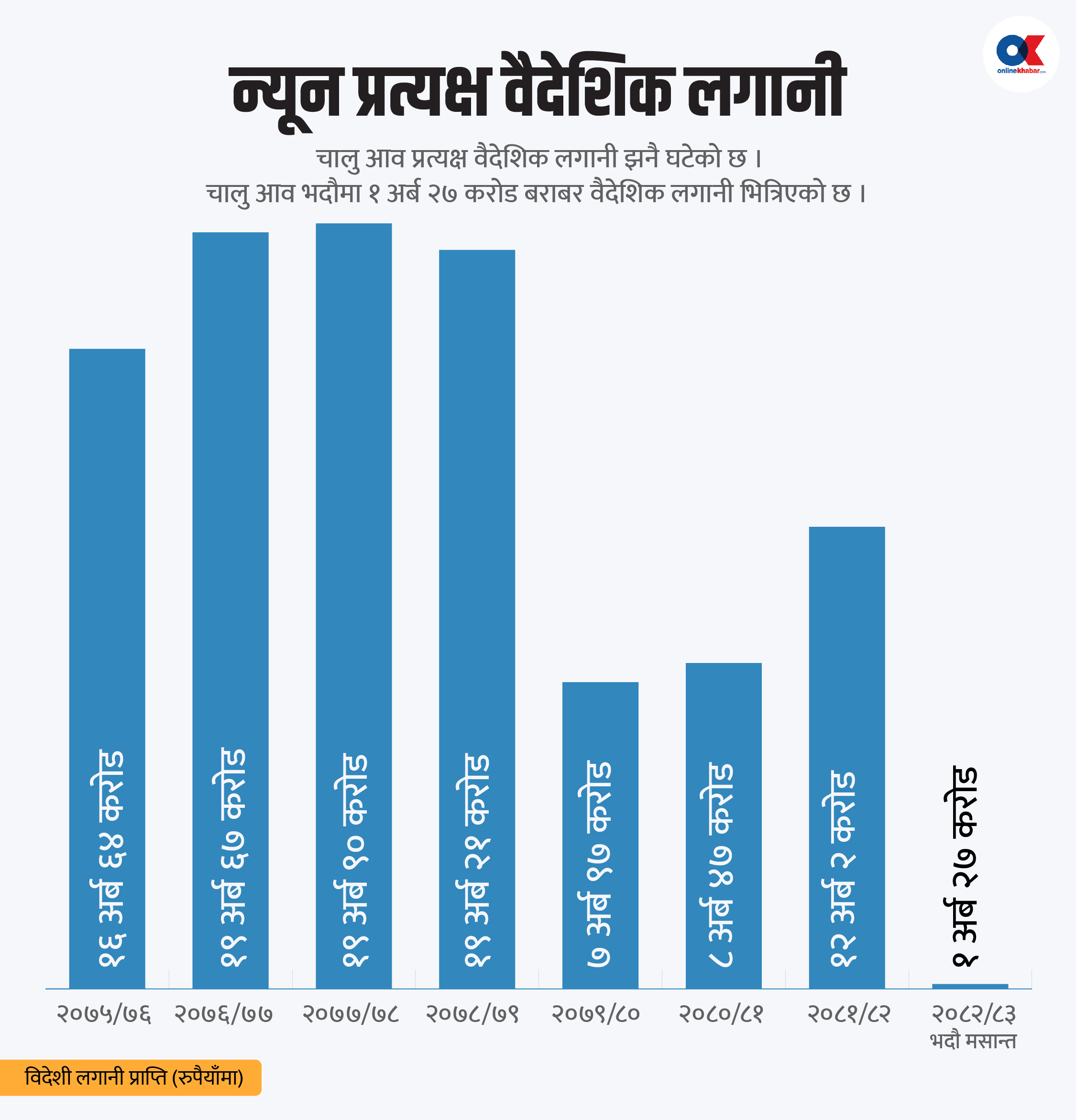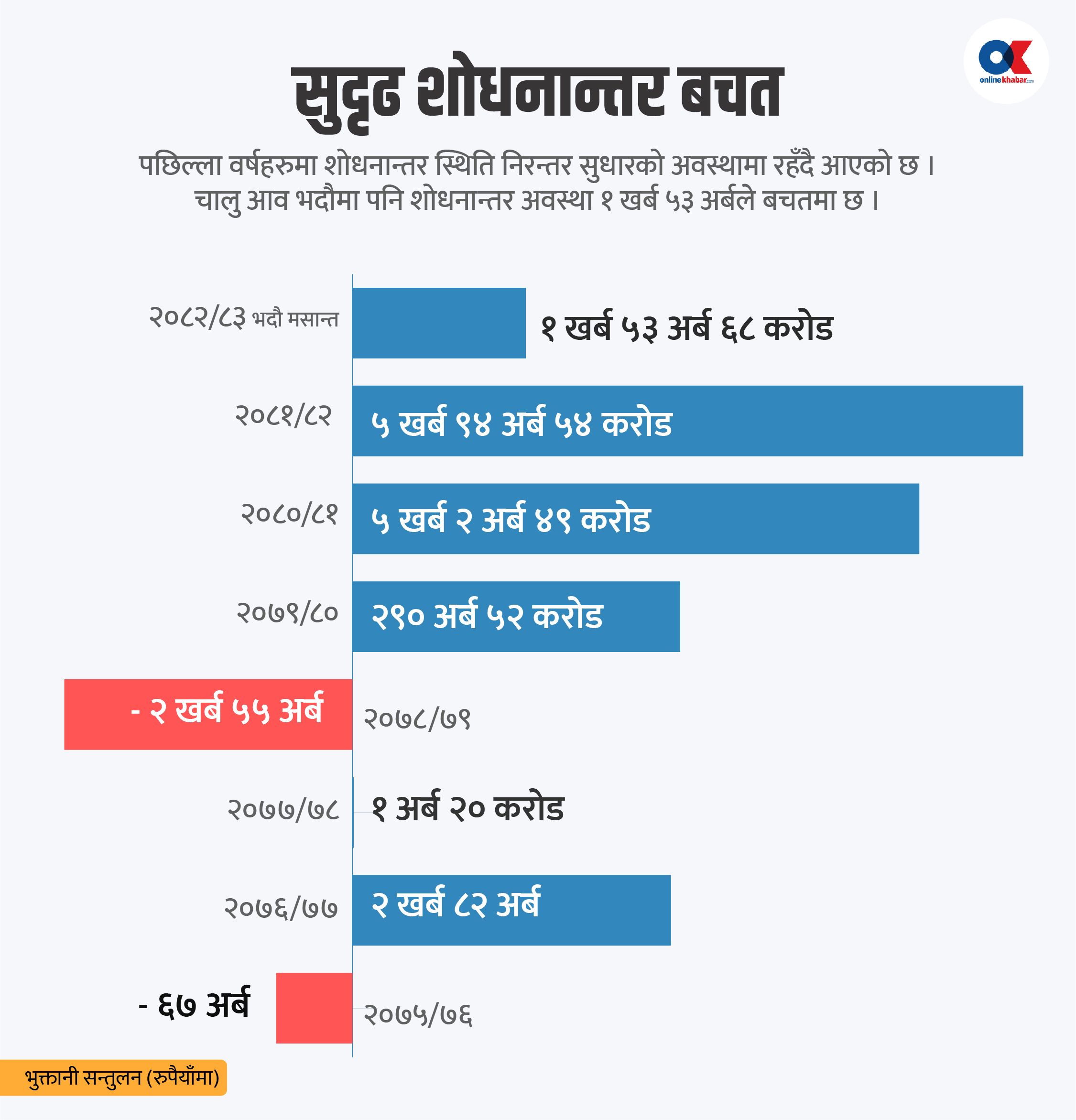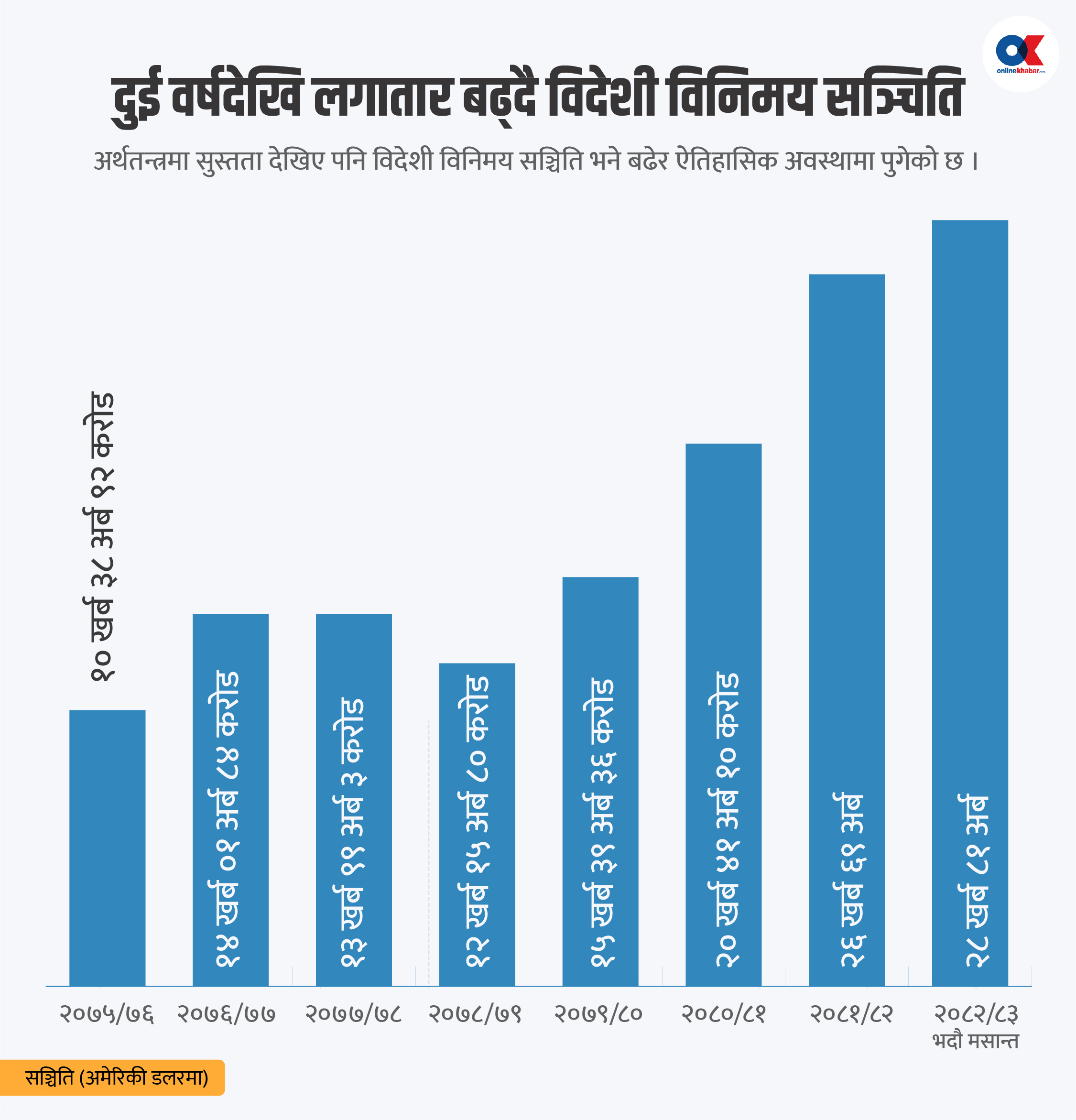 • शोधनान्तर स्थिति १ खर्ब ५३ अर्बले बचतमा छ र प्रत्यक्ष वैदेशिक लगानी १ अर्ब ४१ करोड रुपैयाँ पुगेको छ।