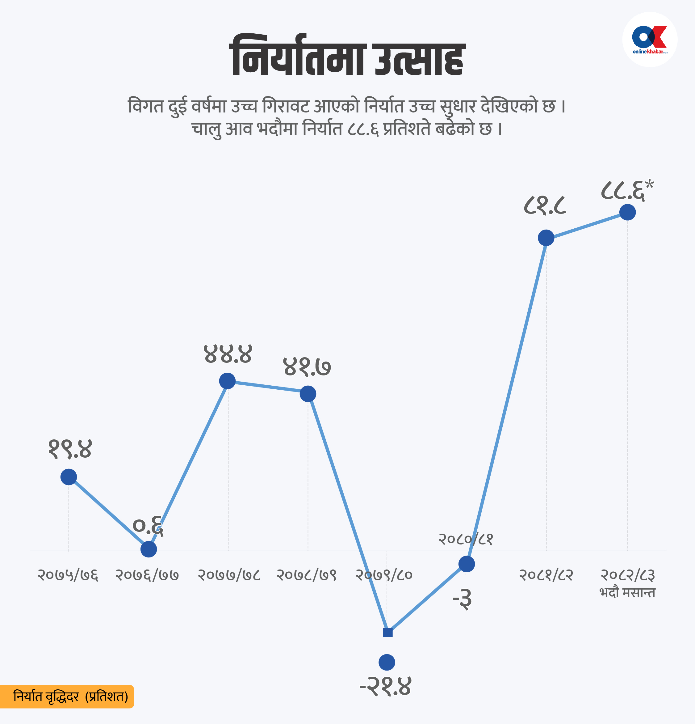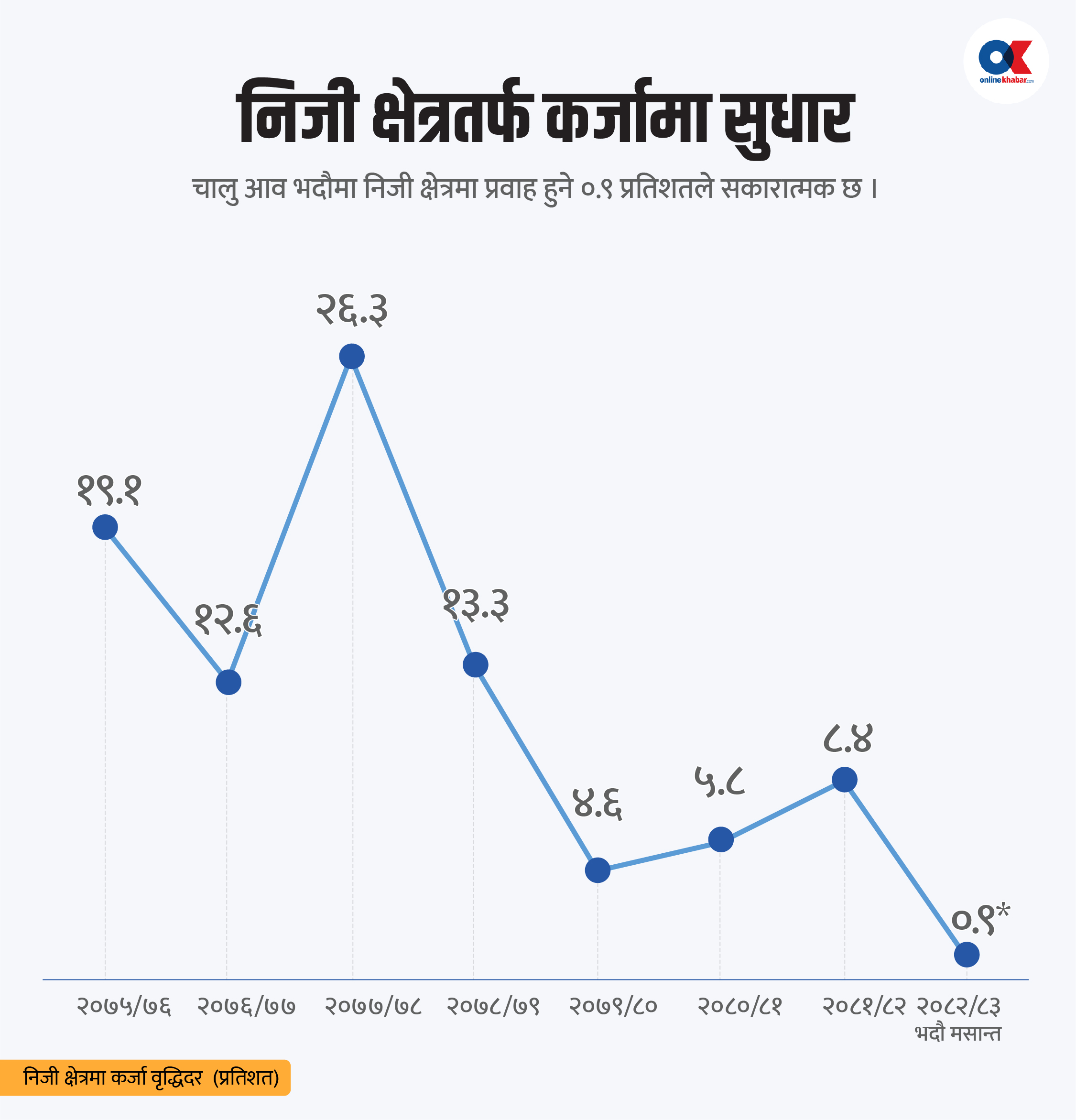 • साउनमा निजी क्षेत्रको कर्जा नकारात्मक भए पनि भदौमा कर्जा वृद्धि भएको छ।