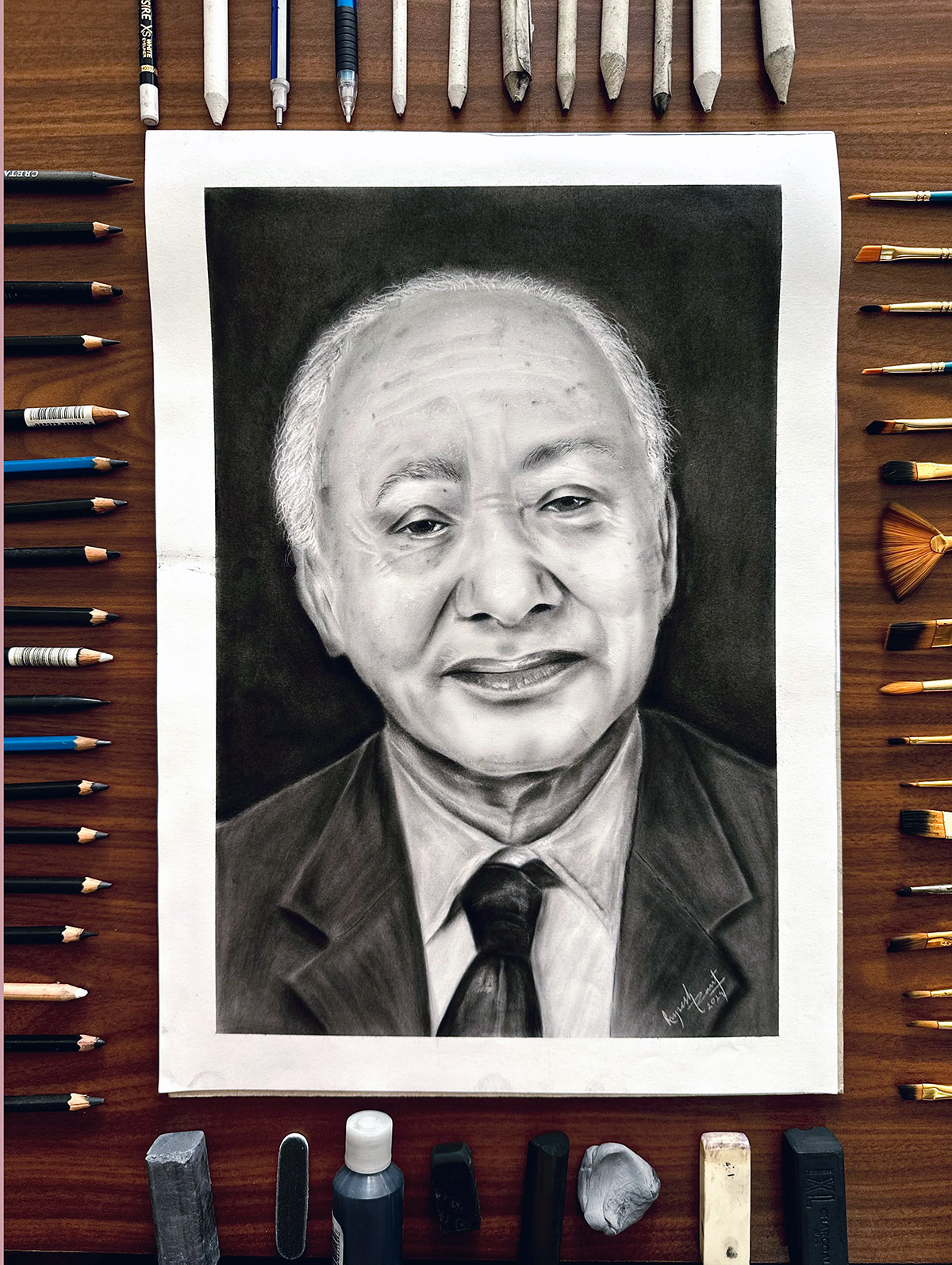 - डा. रुपेशले न्यूरोसर्जरी र चित्रकलामा समान सूक्ष्म ध्यान र धैर्य चाहिने बताउँदै प्रेरणादायी व्यक्तिहरूका पोट्र्रेटहरू चारकोलमा बनाउँछन्।