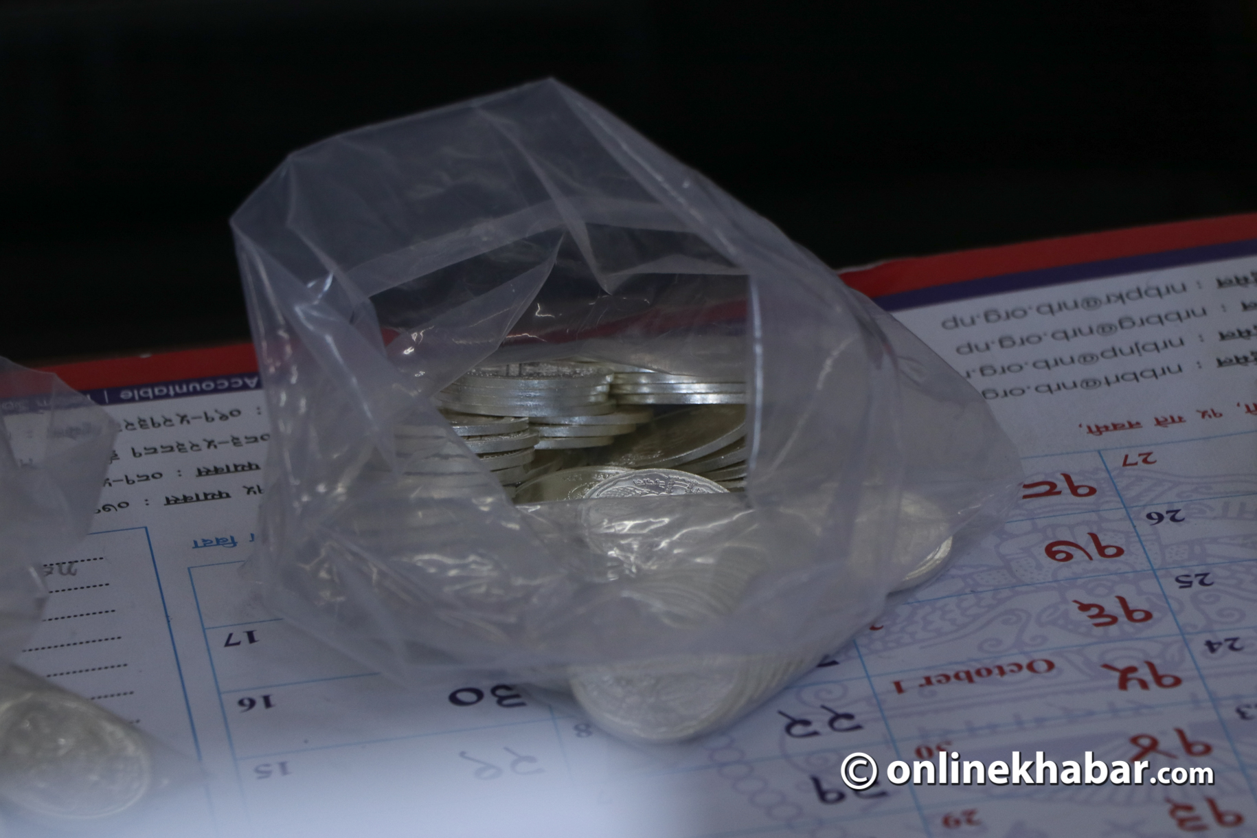 २९ असोज, काठमाडौं। नेपाल राष्ट्र बैंकले यसवर्ष सर्वसाधारणलाई चाँदीको सिक्काको मात्रै बिक्री खुला गरेको छ । चाँदीको सिक्का किन्न मंगलबारदेखि टक्सार महाशाखामा भीड लागेको छ ।