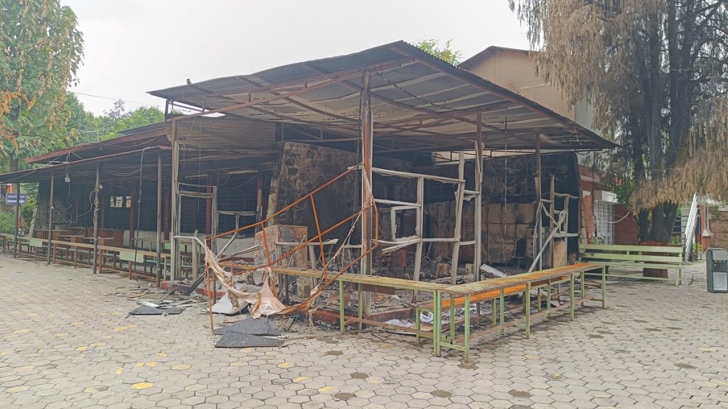घटनास्थलमा रहेका एक सुरक्षागार्डका अनुसार तोडफोड गर्दै आएका प्रदर्शनकारीले तोडफोडसँगै आगो लगाउँदै हिँडेका थिए ।