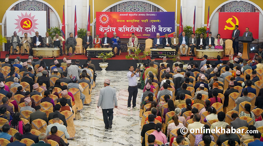 एमाले केन्द्रीय कमिटी बैठकमा वर्णानुक्रमअनुसार सदस्यहरूले धारणा राख्दै
