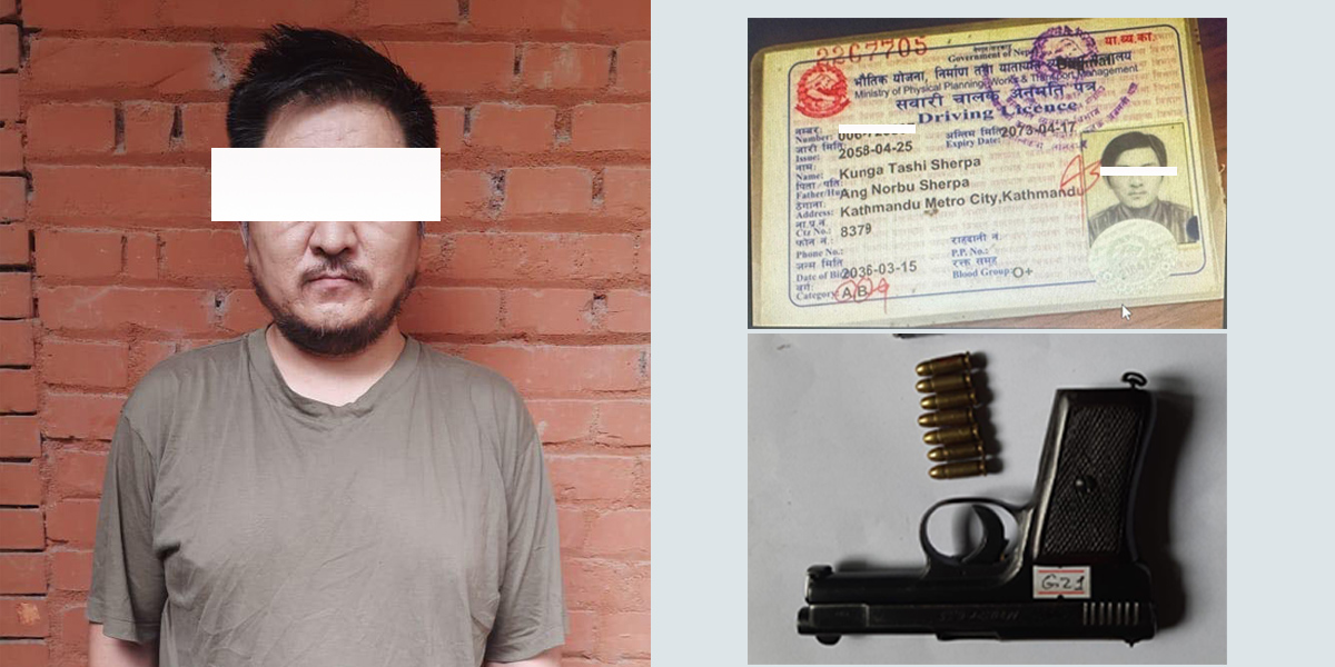 त्यतिबेला सीआईबीले यिनीबाट ७ राउन्ड गोली लोड भएको जर्मन अटोमेटिक पेस्तोलसमेत बरामद गरेको थियो । उक्त पेस्ताल सुन तस्करीमै प्रयोग गरेको हुनसक्ने प्रहरीले बताएको थियो । सुन नलुटियोस् भन्ने हिसाबले कुंगाले पेस्तोल बोक्ने गरेको प्रहरीको बुझाइ थियो ।
