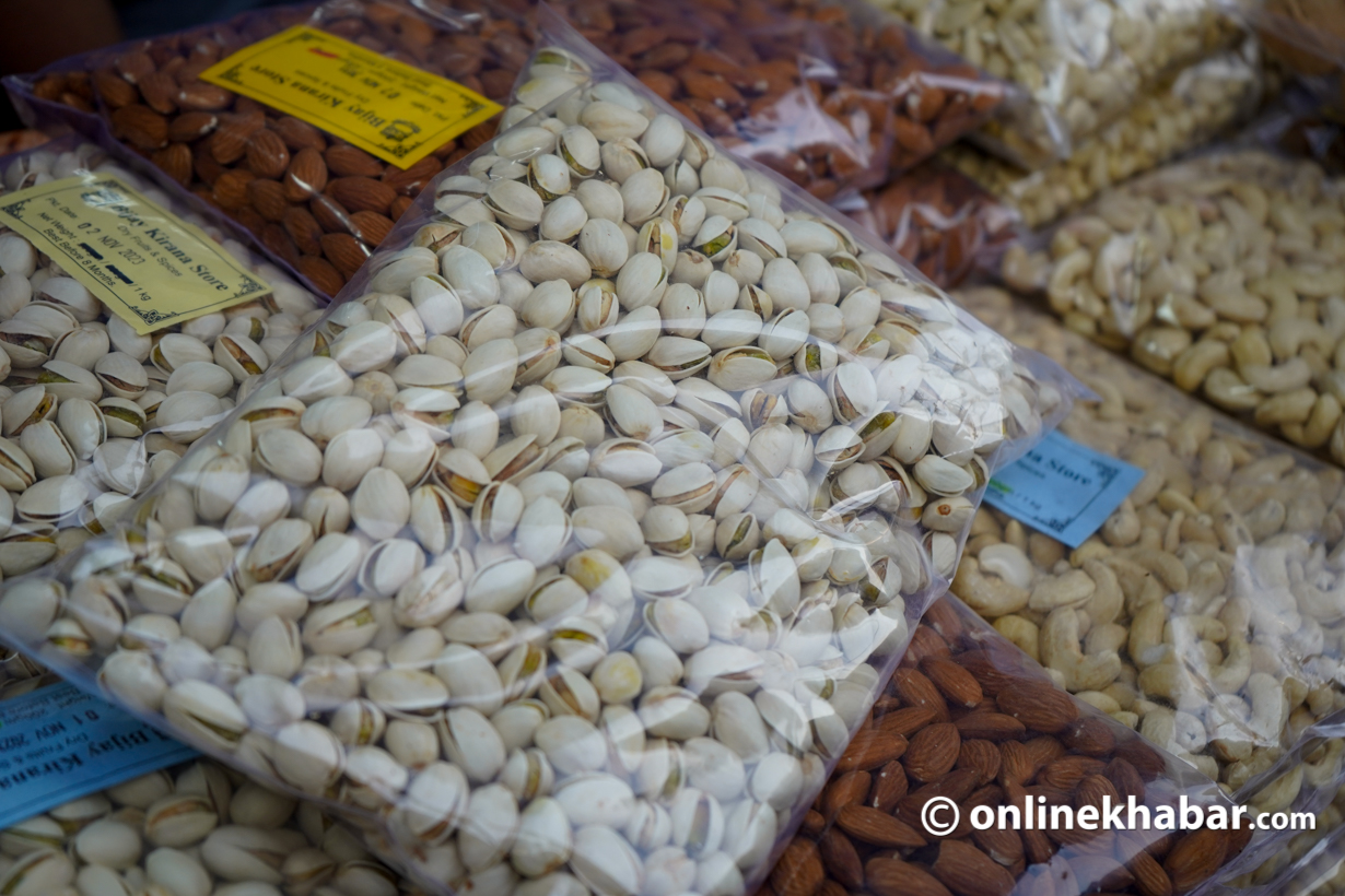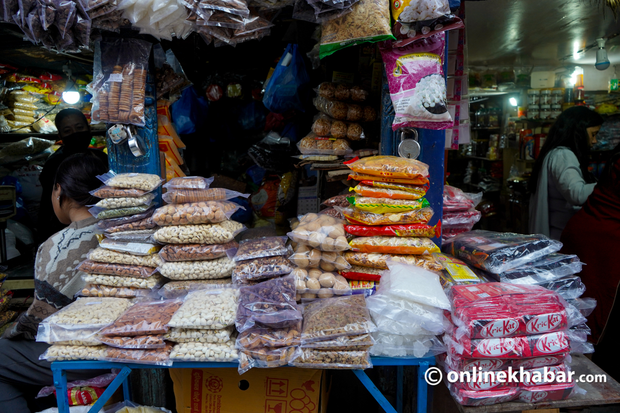 नेपाल खुद्रा व्यापार संघ महासचिव अमूलकाजी तुलाधर तिहारको चहलपहलमा किनमेल भइरहेका सुक्खा फलफूल (ड्राइफ्रुट्स) तथा अन्य सामग्रीको ठूलो हिस्सा आयातित भएको बताउँछन् ।