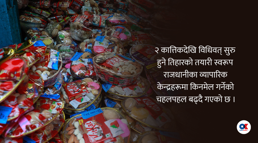 न्युरोड, असन, इन्द्रचोक, भोटाहिटी, बानेश्वर, कोटेश्वर, लगनखेल, थिमि लगायत उपत्यकाका प्रमुख बजारमा तिहारका लागि आवश्यक सामग्री खरिद गर्ने ग्राहकको घुइँचो लाग्न थालिसकेको छ ।