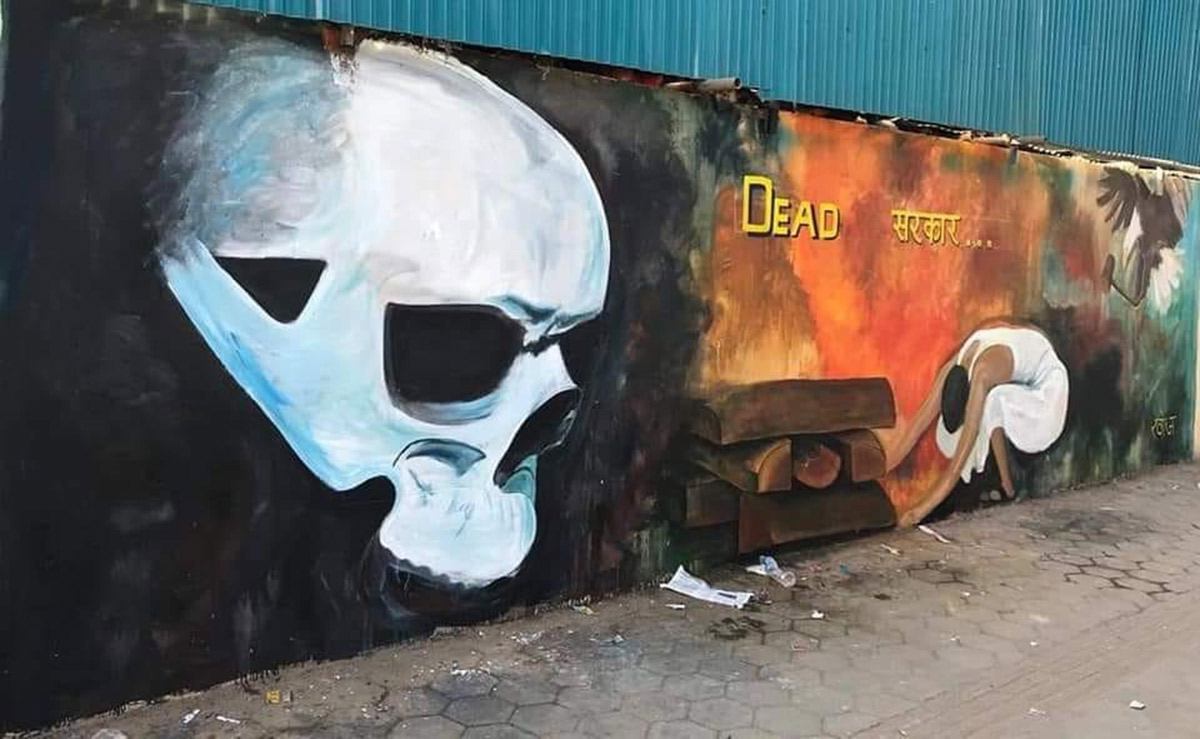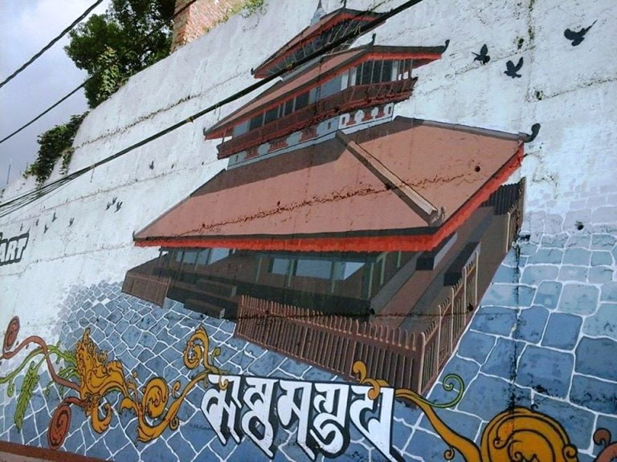 - नेपालमा २०७२ सालको भूकम्पपछि बनेको काष्ठमण्डपको म्यूरल मेटिएपछि काठमाडौं महानगरपालिकाले नयाँ चित्र बनाएको छ।