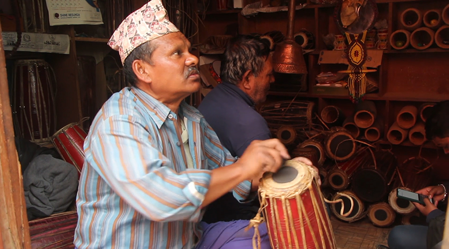 बागलुङको गल्कोटबाट गुल्मीको तम्घासमा वर्षौंदेखि मादल बनाउने पेसामा संलग्न छन्- रामु नेपाली । उनलाई पहिले-पहिले तिहार आउनु केही महिना अगाडि नै नयाँ मादल बनाउने अर्डर आउने गर्थ्यो । पुराना मादल मर्मत गर्नेको पनि भिड नै लाग्थ्यो । तर अहिले त बजार नै छैन । बनाएका मादल पनि बिक्री नभएर थन्किएको उनको गुनासो छ ।