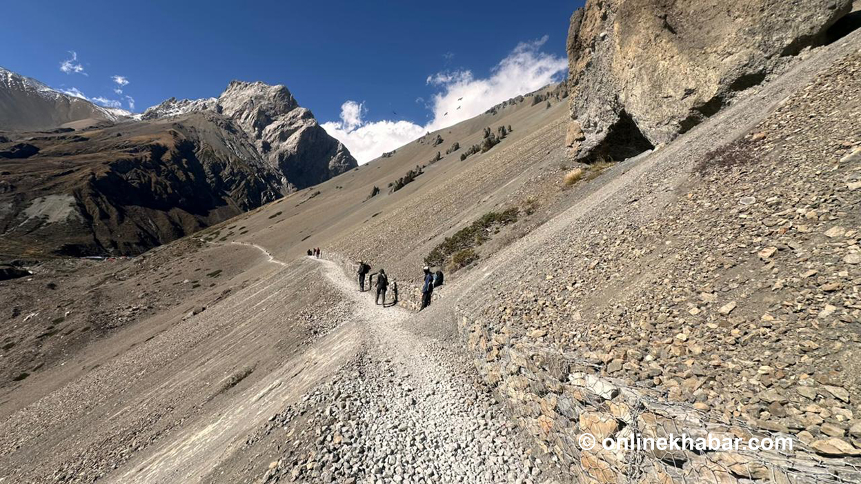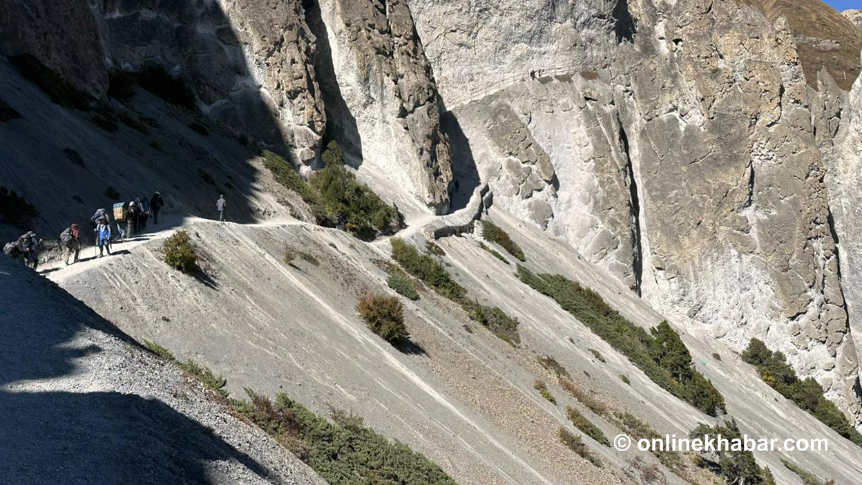 श्रीखर्कबाट तल झरेपछि बेसक्याम्प जाने बाटोमा माथिबाट ढुंगा खस्ने जोखिम छ । तलतिर मर्स्याङ्दी नदी माथितिर पहिरोको जोखिम भएकोले त्यस क्षेत्रमा फटाफट यात्रा गर्नु आवश्यक हुन्छ ।