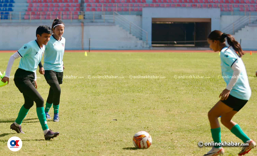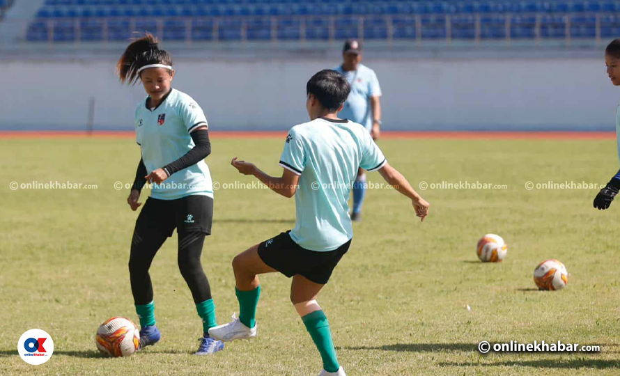 २ कात्तिक, काठमाडौं । आउँदो कात्तिक ७ र १० गते हुने मैत्रीपूर्ण फुटबल खेलका लागि नेपाली महिला फुटबल टोली यतिबेला प्रशिक्षणमा व्यस्त छ ।