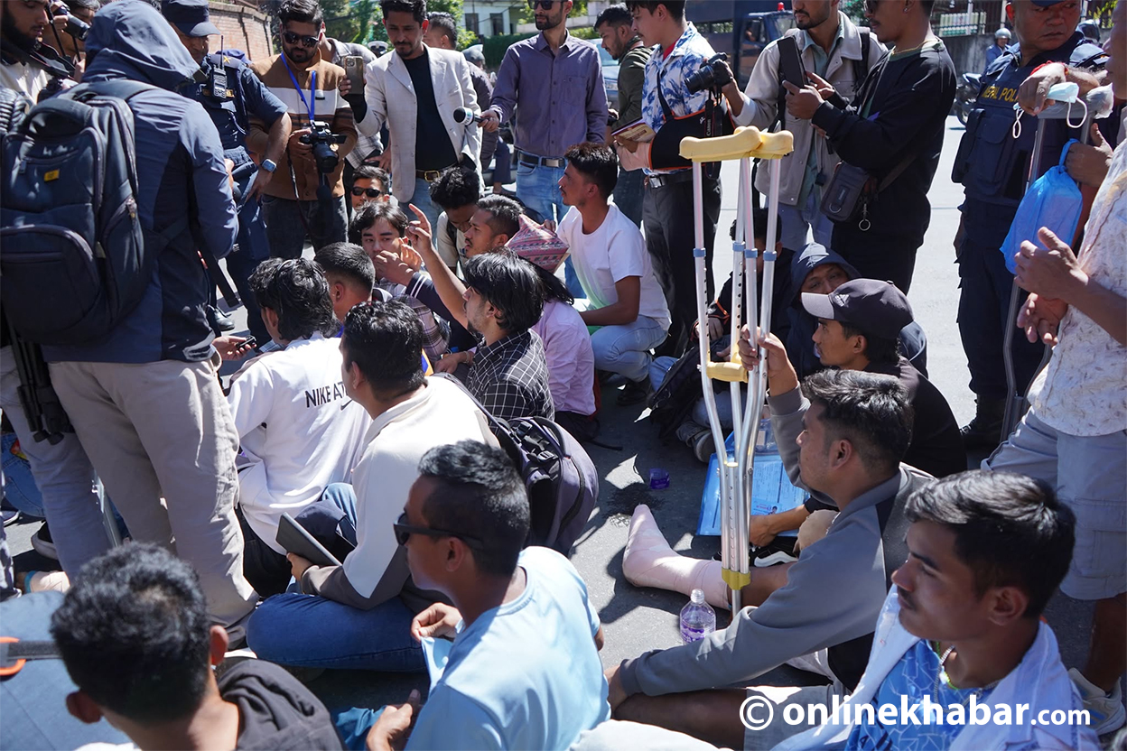 - केही समयपछि उनीहरूलाई नाम बोलाउँदै भित्र प्रवेश दिइएको छ र उनीहरूले सुशासन, शहीद परिवारको माग सम्बोधन र सही जेनजी अस्पतालको बेडमा नक्कली जेनजीको विषयमा छानबिनको माग गरेका छन्।