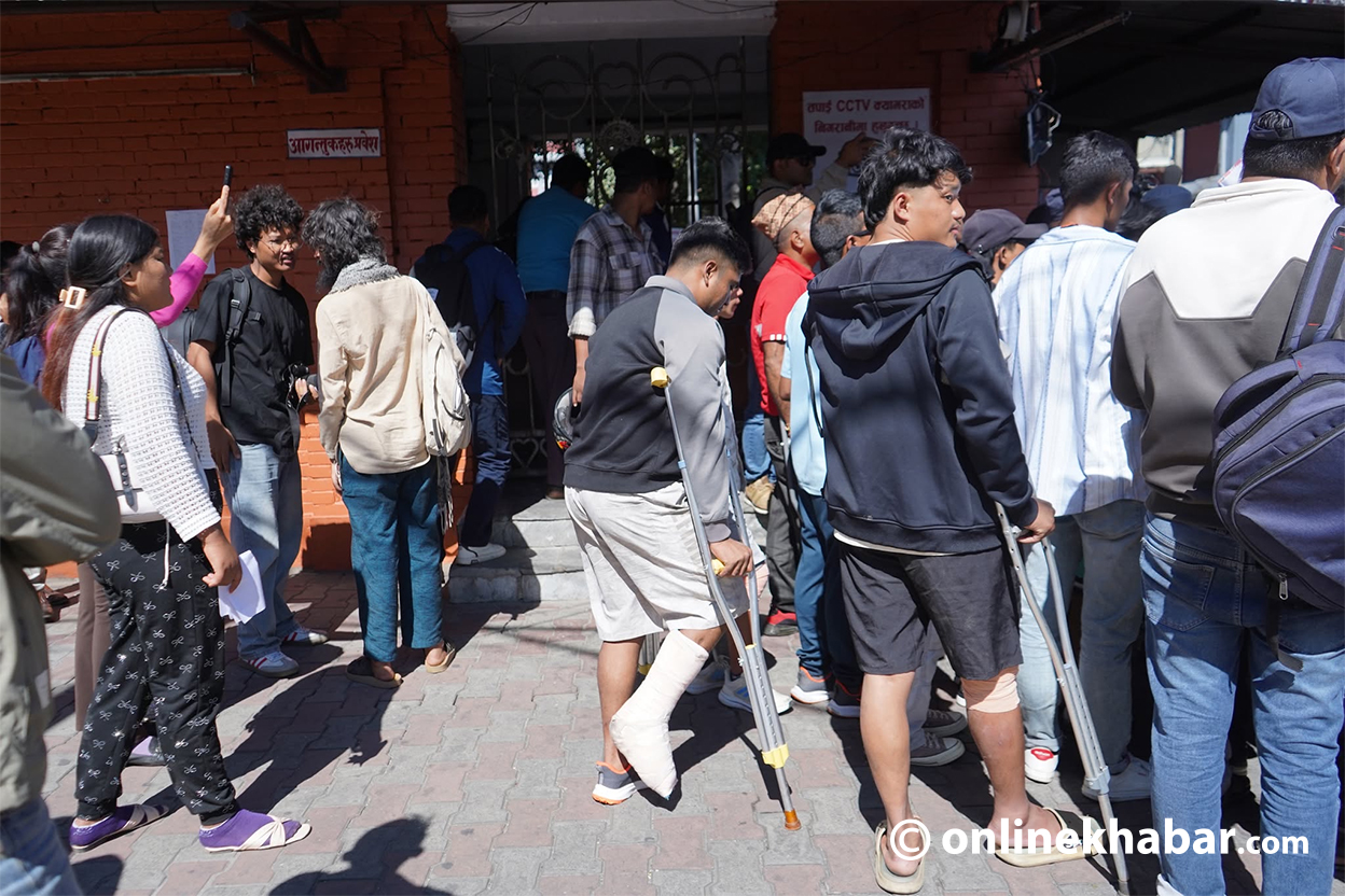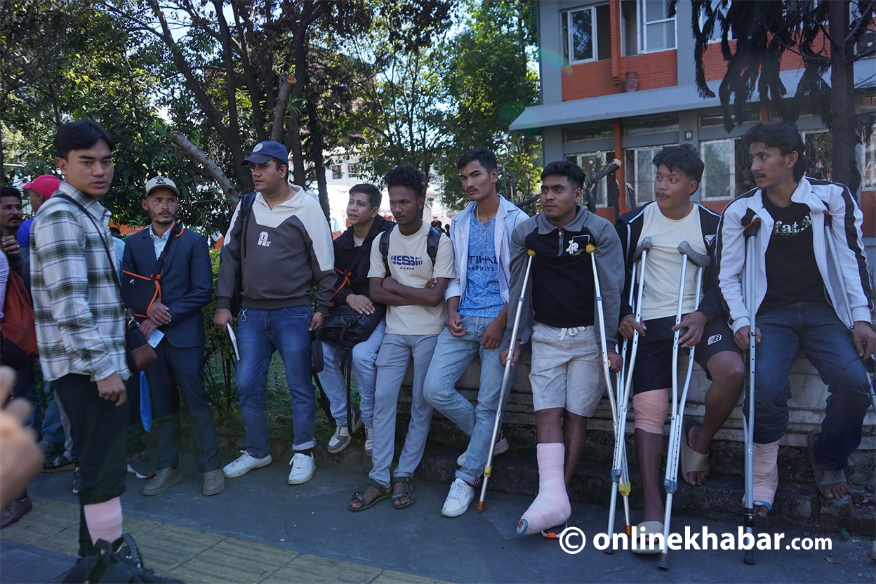 २ कात्तिक, काठमाडौं। जनजी आन्दोलनका क्रममा घाइते भएकाहरू प्रधानमन्त्री भेट्न सिंहदरबारभित्र प्रवेश गरेका छन् ।