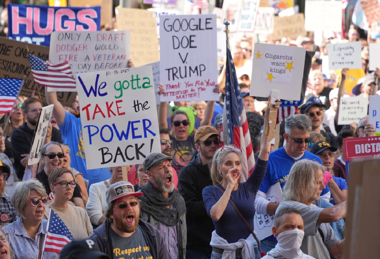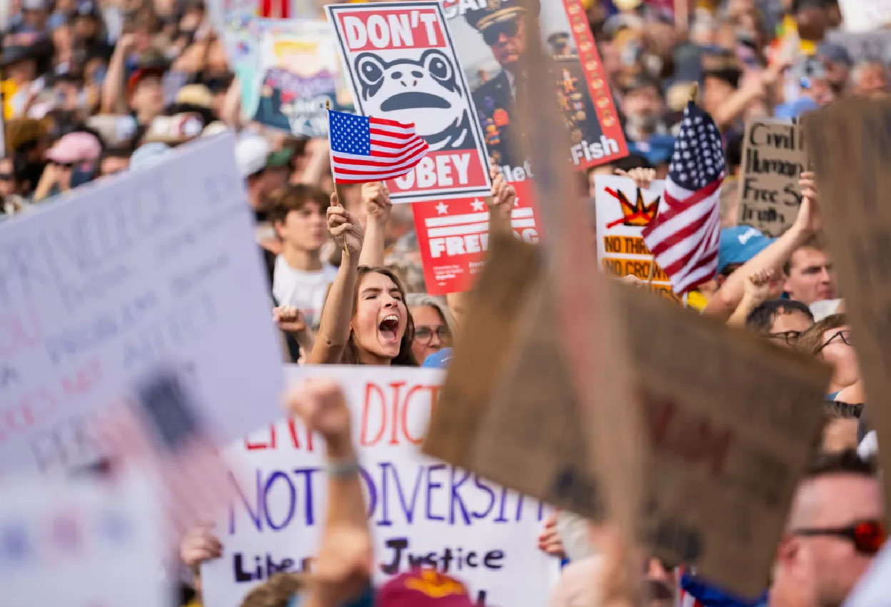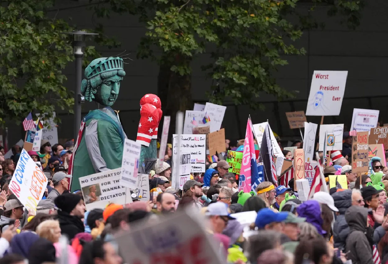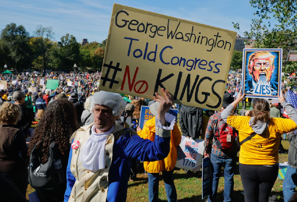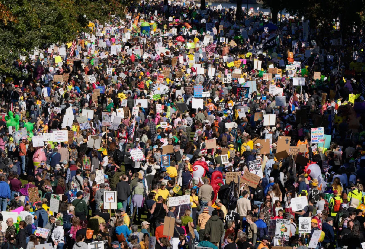 राजधानी वाशिंटन डिसीसहित न्यूओर्क, सिकागो, मिआमी, लस एन्जलससहितका शहरमा सयौं नागरिकहरू ट्रम्पको नीतिविरुद्ध ‘नो किङ्स’ नामक विशाल प्रदर्शनमा उत्रिएका हुन् ।