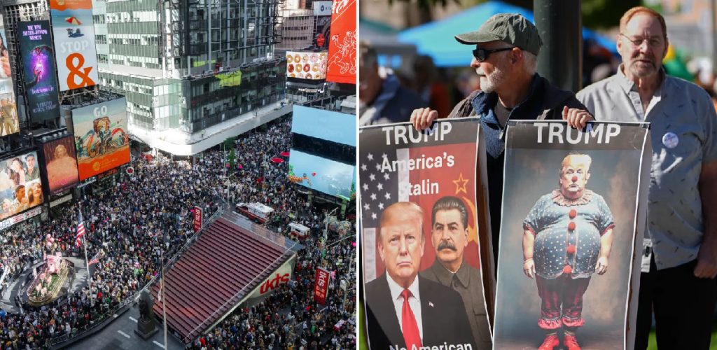 शनिबार न्यूयोर्क सिटीको प्रसिद्ध टाइम्स स्क्वायर र वरिपरिका सडकहरू हजारौँ प्रदर्शनकारीले भरिएका थिए ।