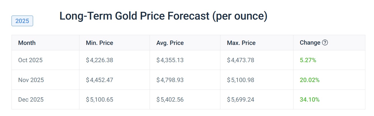 डिसेम्बरसम्म अन्तर्राष्ट्रिय बजारमा प्रतिऔंस ५ हजार ७ सय अमेरिकी डलरसम्म सुनको भाउ पुग्ने क्वाइनकोडेक्सको अनुमान छ । यो भनेको हालकोभन्दा ३४.१ प्रतिशत बढी हो । हाल अन्तर्राष्ट्रिय बजारमा सुन प्रतिऔंस ४ हजार २४९ डलर हाराहारी छ । एक औंस बराबर २.४३ तोला हुन्छ ।