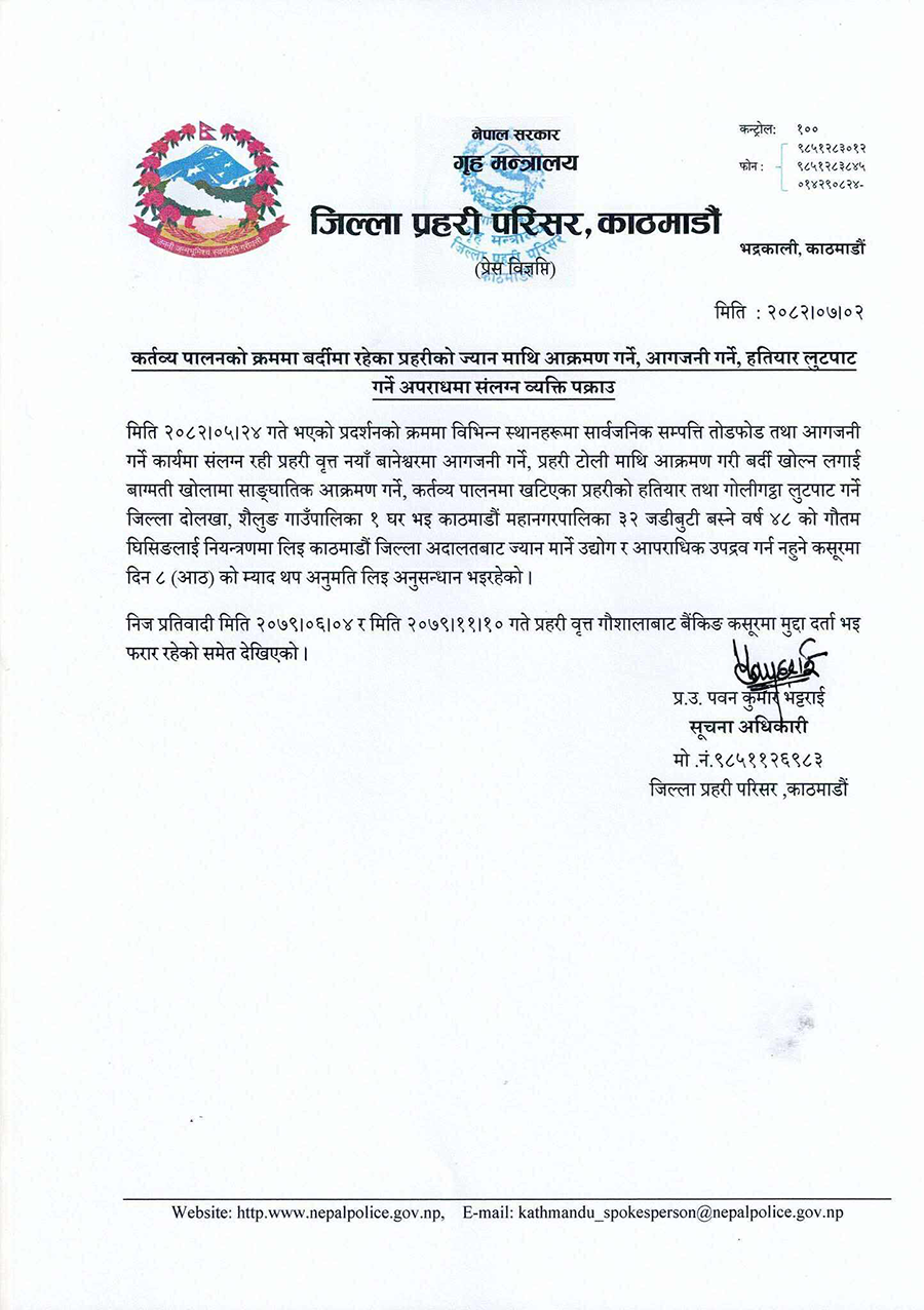 हेर्नुहोस् प्रहरी विज्ञप्ति :