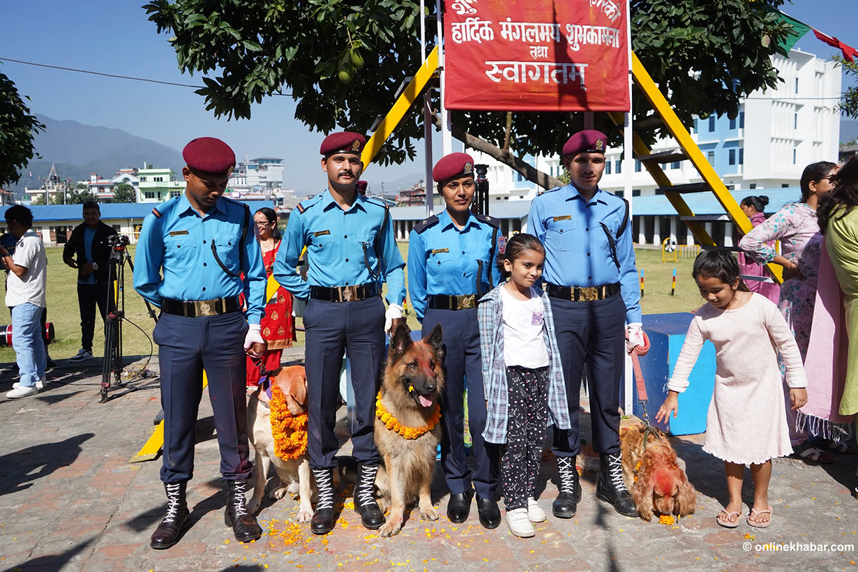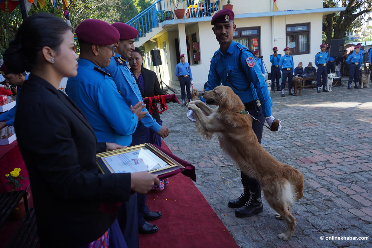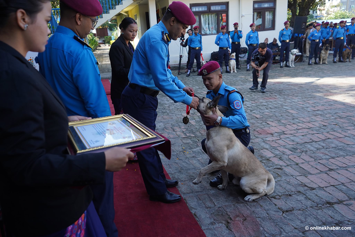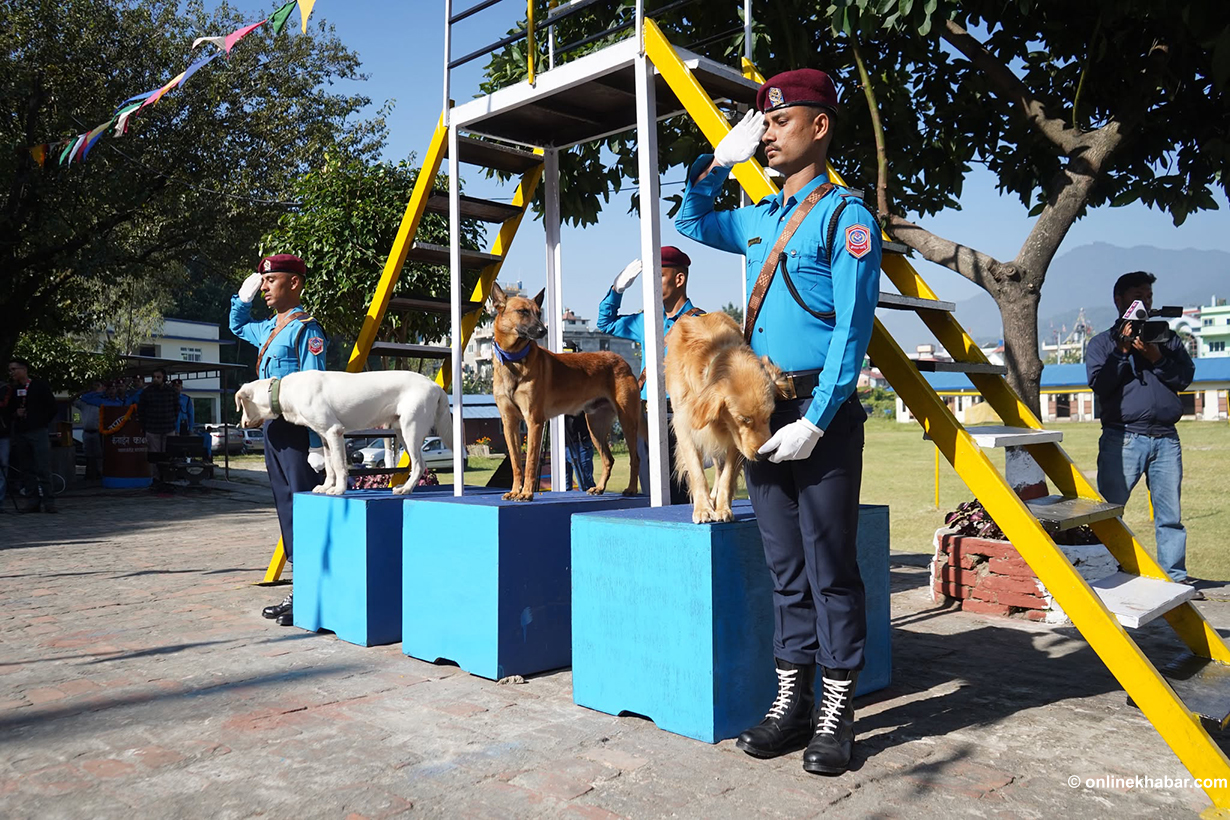 प्रहरीले मनायो कुकुर तिहार, उत्कृष्ट घुङ्ग्रुलाई अवार्ड (तस्वीरहरू)