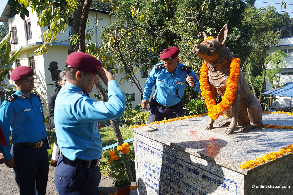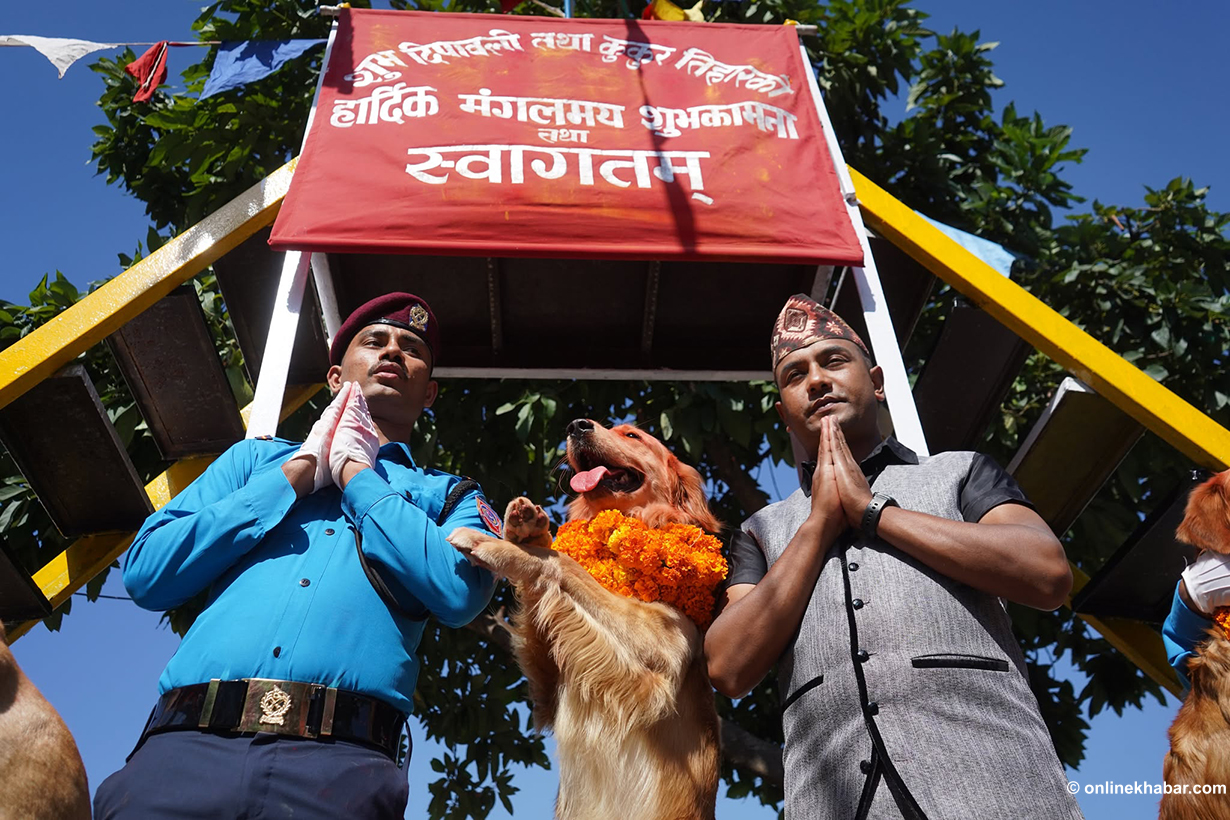 केनाइन कार्यालय महाराजगञ्जमा सोमबार बिहान पूजाआज गर्दै प्रहरीले कुकुर तिहार मनाएको हो । अघिल्ला वर्षहरुमा नेपाल प्रहरीले धुमधामका साथ कुकुर तिहार मनाउने गरेकोमा यो वर्ष भने सामान्य रुपमा मनाएको छ ।