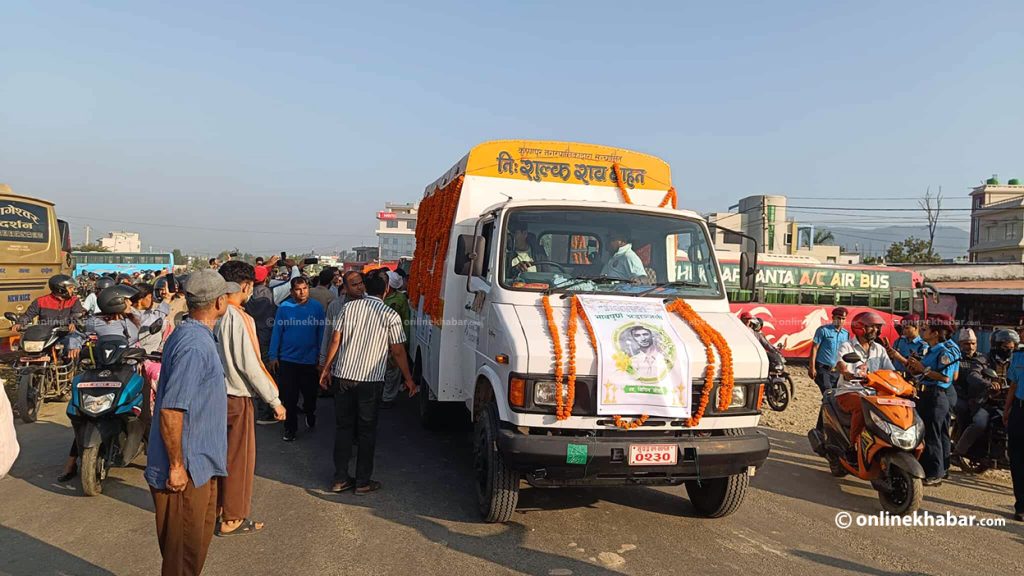काठमाडौंबाट नेपाली सेनाले स्काई ट्रकमा ल्याएको विपिनको शव धनगढी विमानस्थलमा सलामी अर्पण गरेर उनको परिवारलाई बुझाएको थियो ।