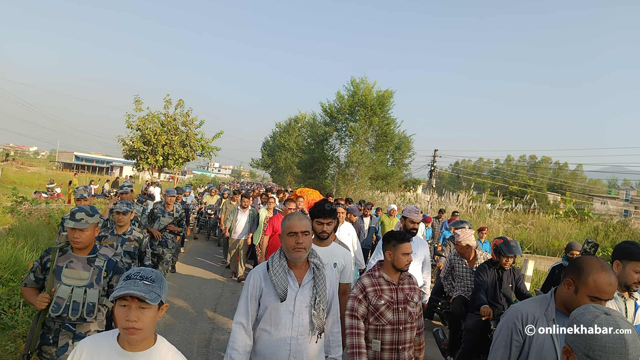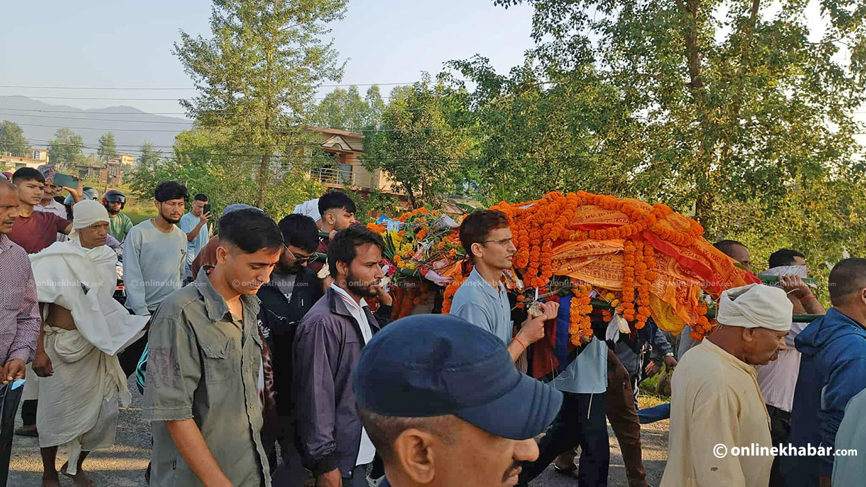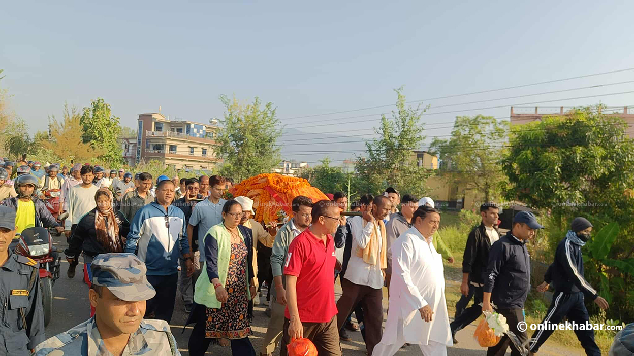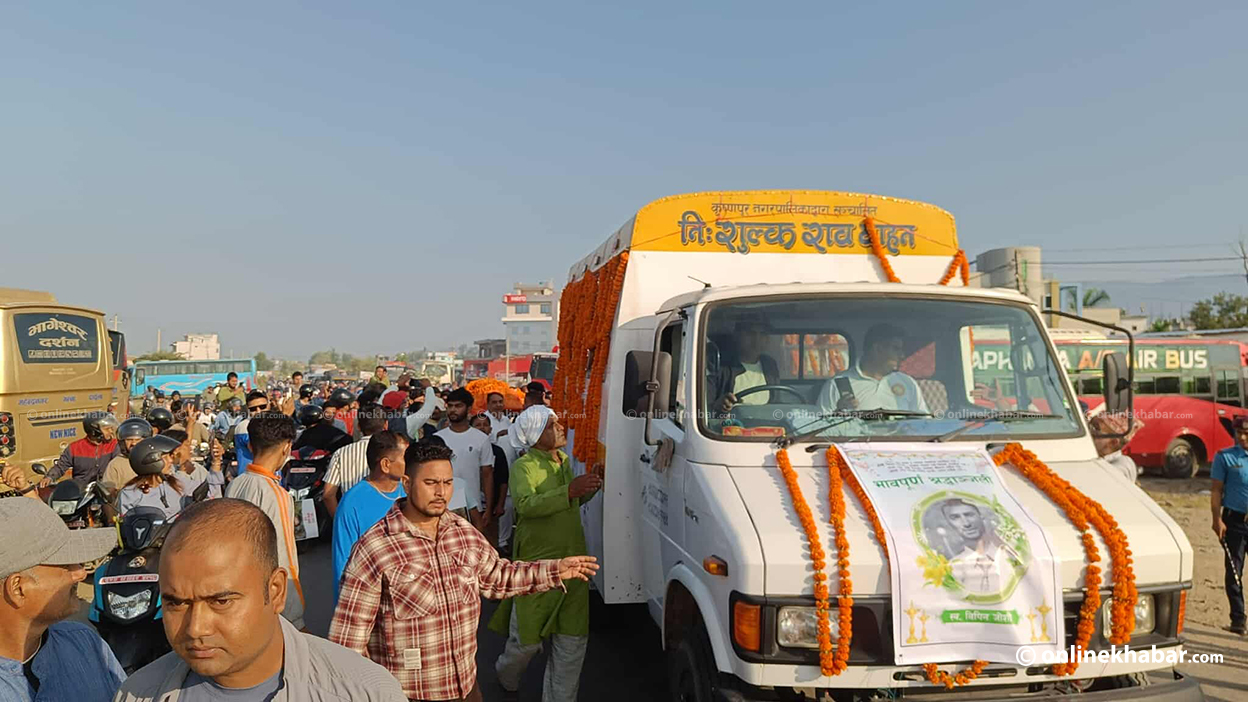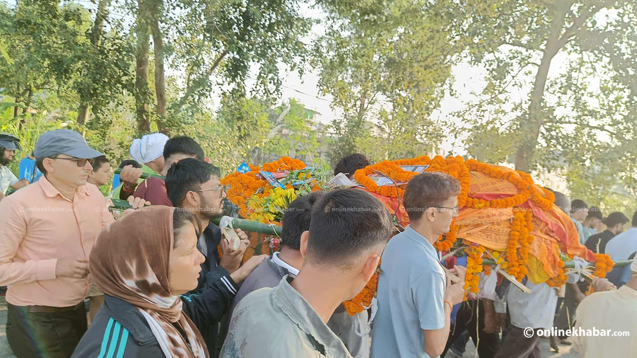 ४ कात्तिक, कञ्चनपुर । महाकाली नदी किनारमा अन्त्येष्टि अघि विपिन जोशीको शवयात्रा सुरु भएको छ । भीमदत्त नगरपालिकाबाट केहीबेर अघि शवयात्रा सुरु भएको हो । शवयात्रामा नेपालका लागि इजरायली राजदूत समेत सहभागी छन् ।