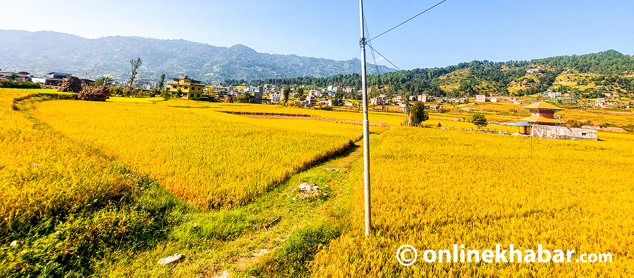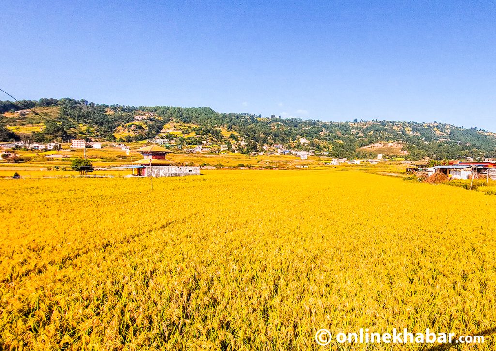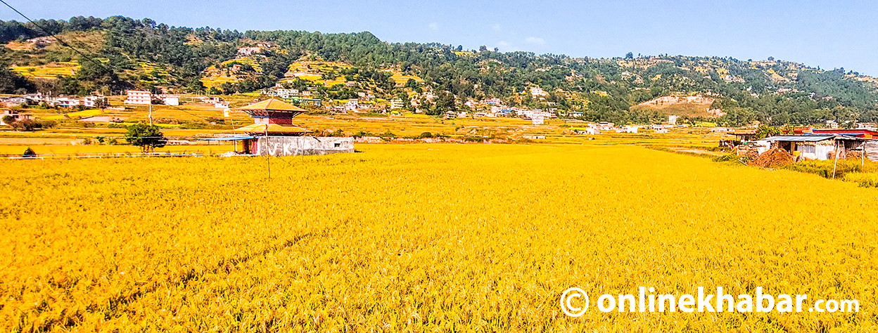 ४ कात्तिक, काठमाडौं। वर्षाको अन्त्य, सेतो बादल, सफा नीलो आकाश मुनि सुनौला धानका बालाहरू लहराउँदै शरद ऋतुले भकुण्डेबेशीको फँटहरूमा मनमोहक छाएको छ ।