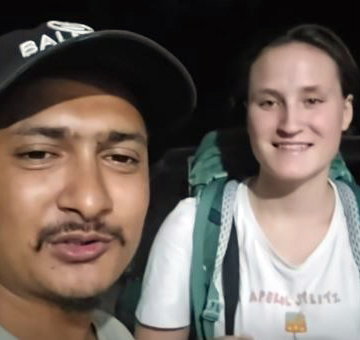 दायाँबाट– आकाश अर्याल दायाँ, जर्मन पर्यटक र पर्यटकको ब्याग छुटेको ईभी चालक ।